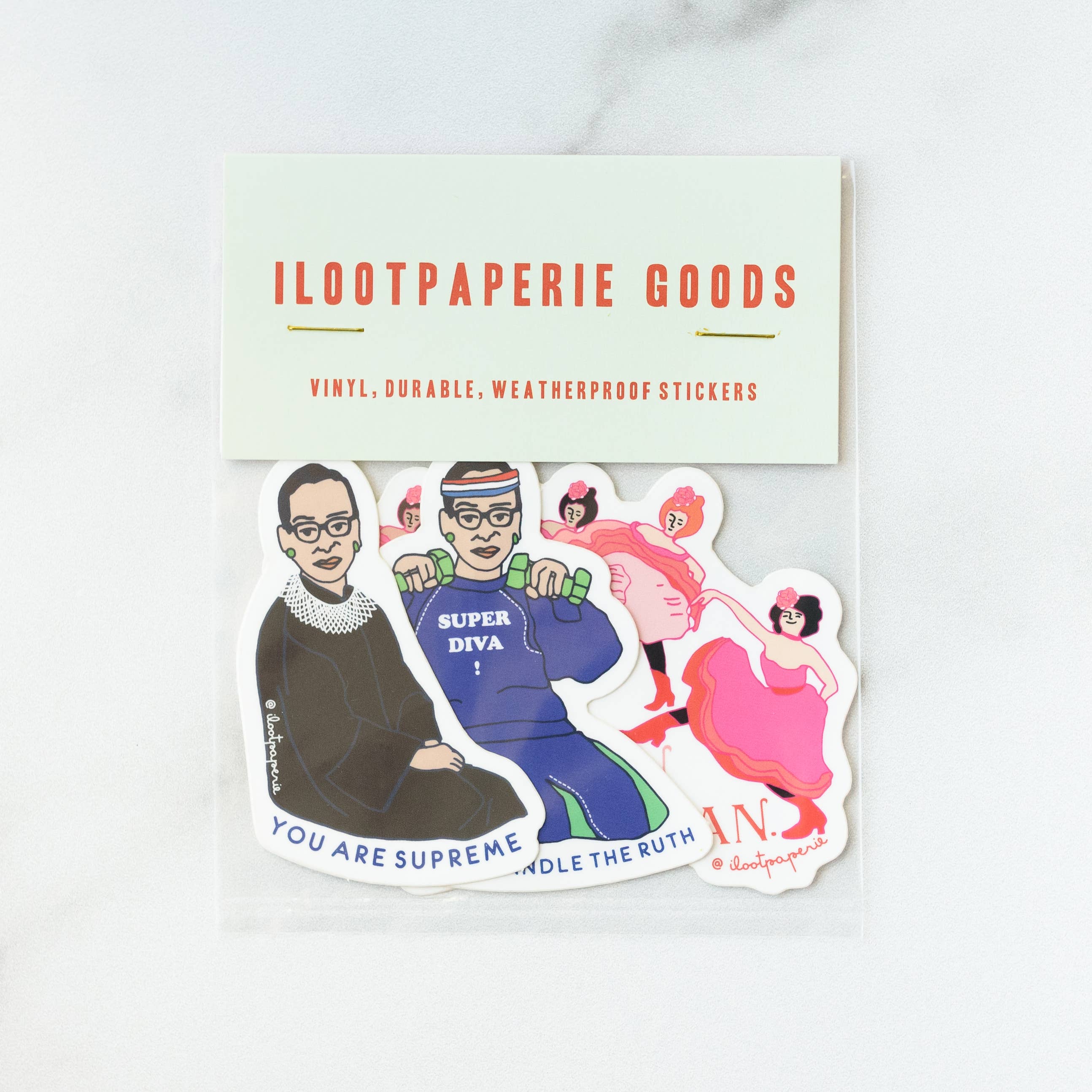 You are supreme - notorious RBG deems it so! Introducing our Lovely Lady Puns Greeting Card Collection! We've rounded up a group of kick-ass women in history for our tribute to the "lovely lady puns" These folded cards are 4.25" x 5.5" (A2), Indigo Press printed on premium cream linen textured 100lb cardstock. High quality, mint envelopes with Euro flap included. Material: 100lb linen cardstock Size: 4.25" x 5.5" (fits a A2 Envelope)