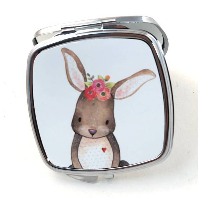 Measuring just 2.5” x 2.5”, this pocket-sized marvel is designed to fit seamlessly into your handbag, pocket, or travel kit, offering a touch of elegance wherever you go. The mirror’s front features a high-resolution aluminum print of custom artwork, transformed into a vibrant, durable metallic masterpiece. When opened, both sides reveal smooth, clear mirrors, making it perfect for quick touch-ups, self-checks, or a moment of reflection.