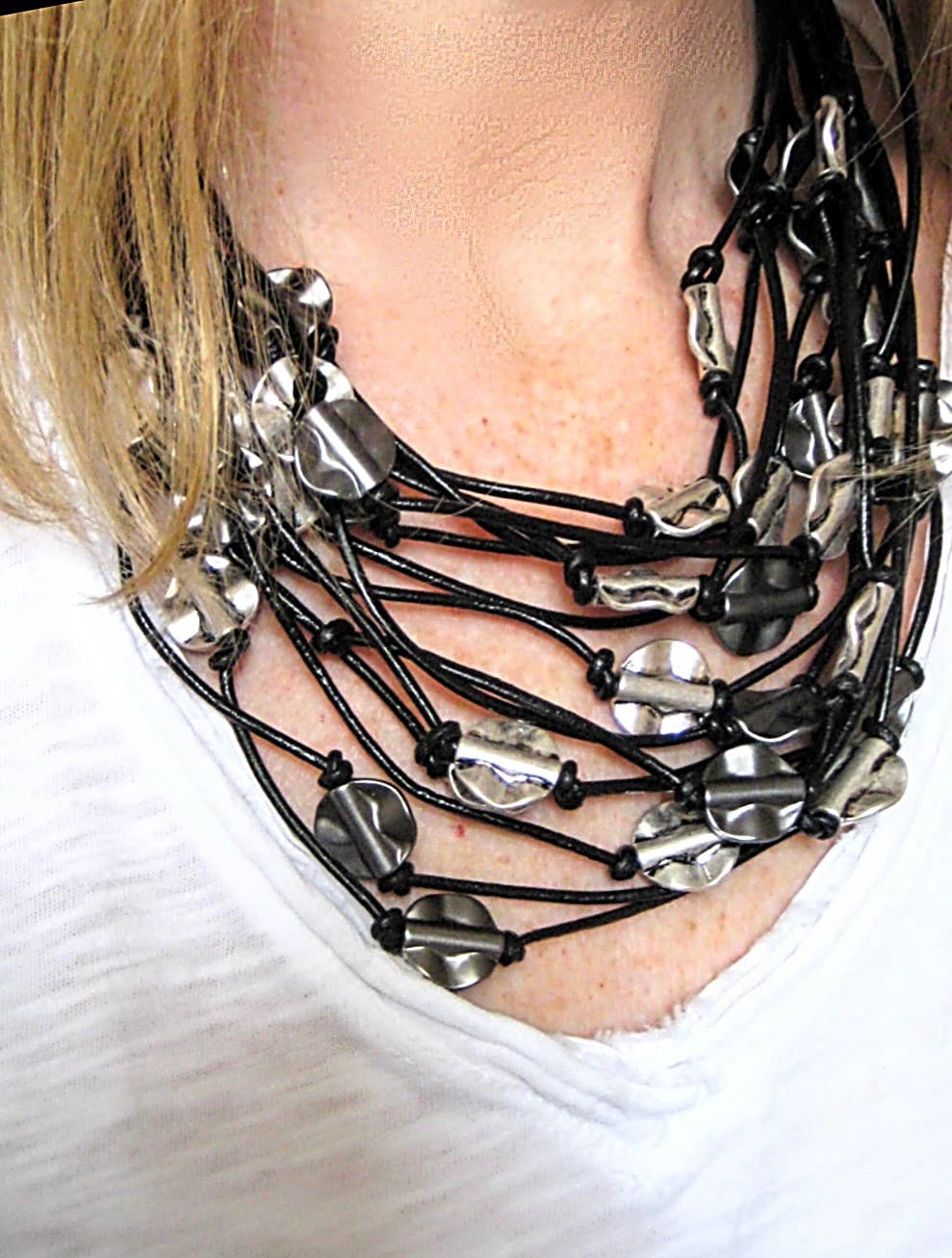 This statement piece is short chocker necklace. Single bead is abstract painted. Natural fibers of 100% cotton. Soft to the touch with magnetic rose gold closure.