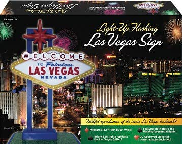 Add some life to any setting with our welcome to las vegas led lit sign. Operated simply with two aa batteries our sign is a total conversation piece for your home or office. It's led lit bulbs give the iconic sign the accent it deserves. Model # WD516. Welcome to las vegas - metal sign. Distressed / vintage finish. Wall mountable. Battery powered led lightbulbs. Color - multi.
