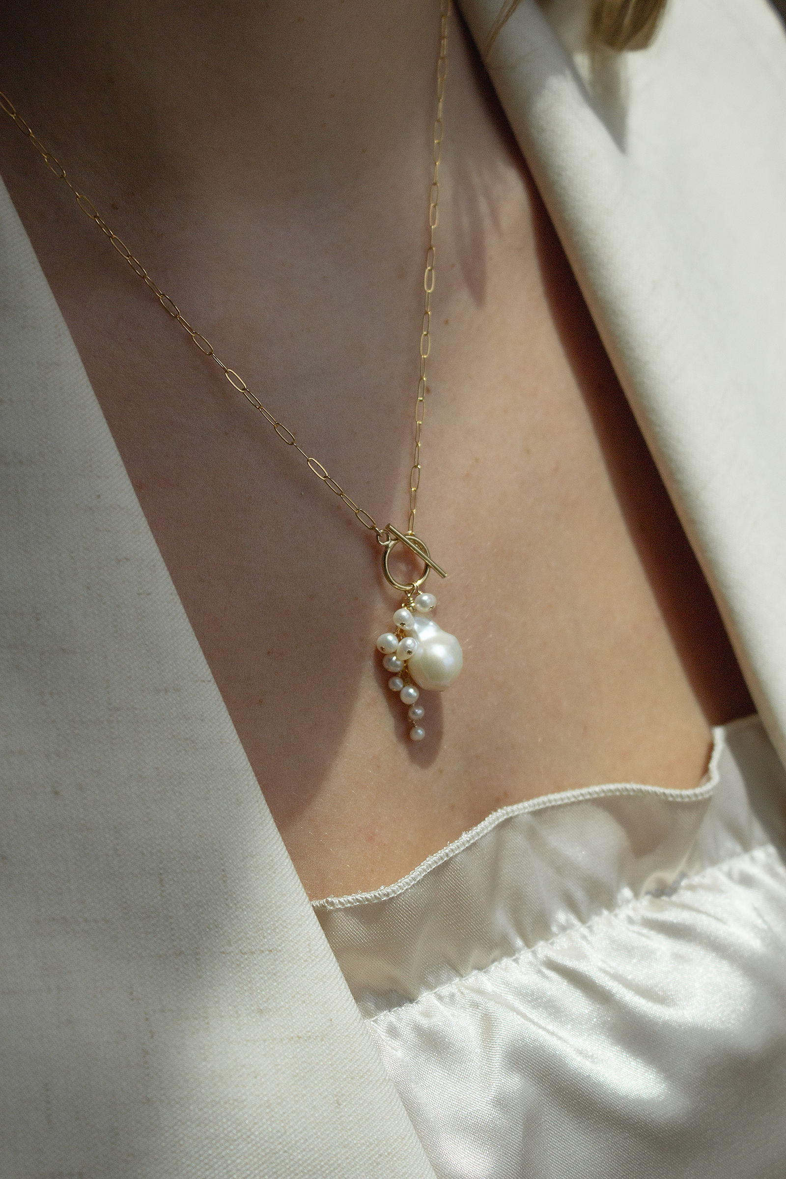 The perfect style to add a little something to your v-necks and button downs. Looks great layered with the gold dust solitaire or grande aurous necklace. Closure: spring ring clasp. Handmade in New York. Arrives perfectly packaged. As seen on Victoria's Secret model, Maggie Laine and actress Emily Hall.
