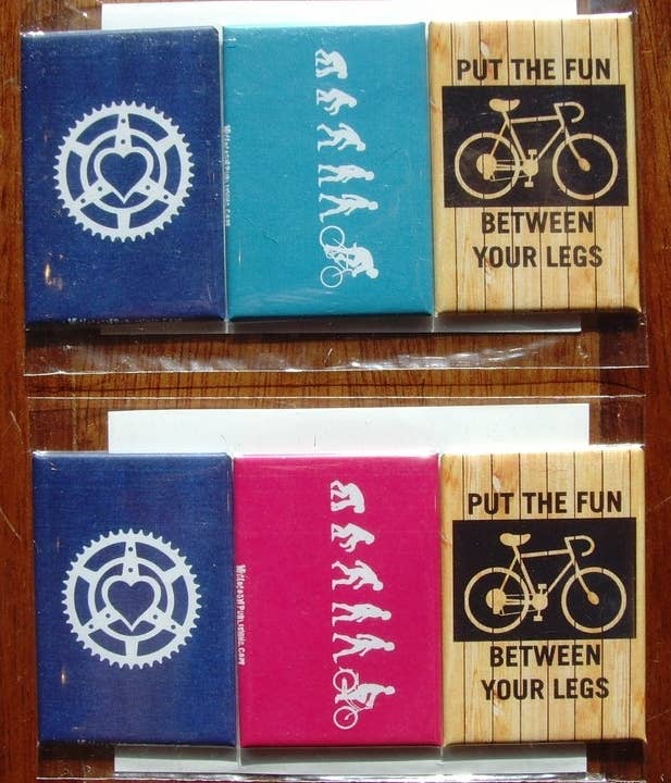 Super cute metal bike magnets are so fun to sell. They are cheap affordable add on's that your customers will love. They always bring a smile when sold. Small Metal Magnets made in the USA using recycled metals that are sourced all over the United States. Painted and have strong magnet.