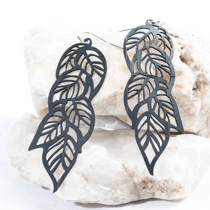 Tree Pose is an ABD Culture and Yoga for Cancer collaboration piece. This is an up-cycled bicycle inner tube earring, made to order in the USA with stainless steel findings.