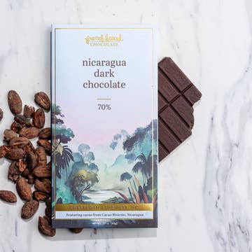 Bean to bar. I fell in love with Rugoso from the first bite. I never before tasted such an unusual and delicate cocoa. When I received the sample, I was not expecting anything possibly more interesting than the already famous and classic Venezuelan cocoa. However, it turned out that Rugoso became one of the top 5 bars that I keep on my desk for my own enjoyment. The Rugoso beans have a fresh fruity flavor echoing with the taste of plum and bing cherries. I invite you to share my experience and become a strong devotee of the finest Nicaraguan cocoa. ~Andre V 48-hour conching process Soy-free and Gluten-free product. Vegan. All natural ingredients. Ingredients: Rugoso Cocoa Beans, Organic Cane Sugar. 1 case of 12 bars.