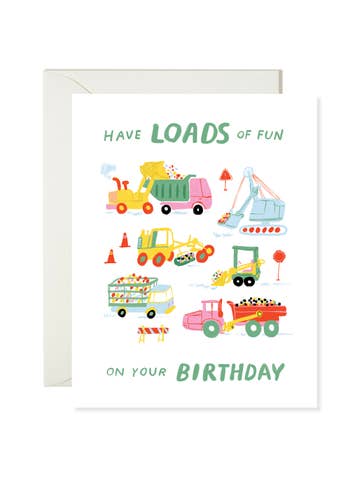 Make their special day extra memorable with this charming vintage dump truck birthday card! The timeless design will bring nostalgic joy - perfect for truck-loving kids adults alike! Coordinating striped envelope liner Euro flap black envelope included** Made in the USA Wrapped in plastic sleeve for protection A2 (4.25 x 5.5 inches) **NOTE: This card contains a dark black envelope. A self-stick label or paint pen is recommended for addressing.