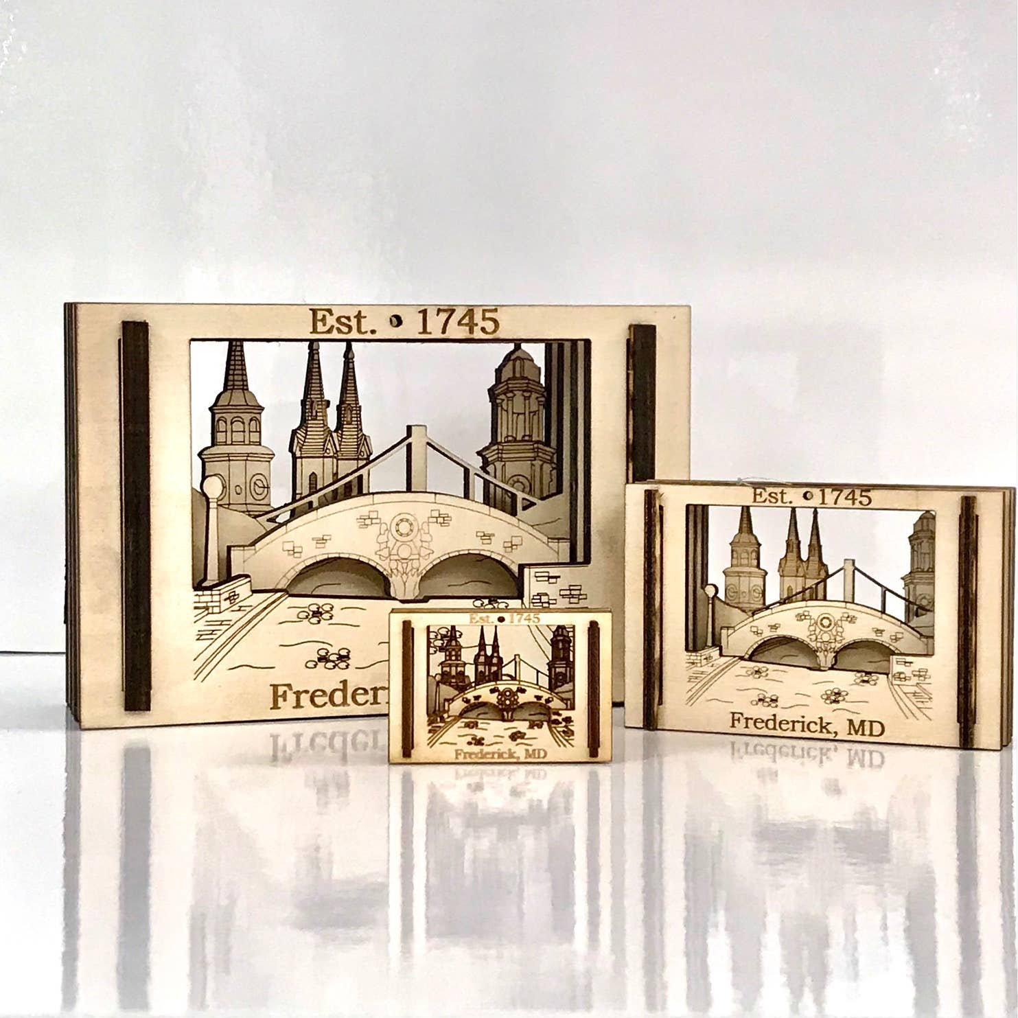 Experience a piece of the Great Lakes State right in your living room with the Matchbox Miniature from Ingeneius. This small yet intricate ornament is a 3D scene encapsulated in a matchbox, capturing the essence of Michigan. Each piece is crafted with precision and care, showcasing the unique capabilities of laser cutting technology. Whether you're a native of the Great Lakes State or an admirer from afar, this decorative object adds a touch of charm to any home decor. Made in our workshop in Bristol, RI, this ornament stands as a testament to our commitment to creating unique and high-quality pieces.