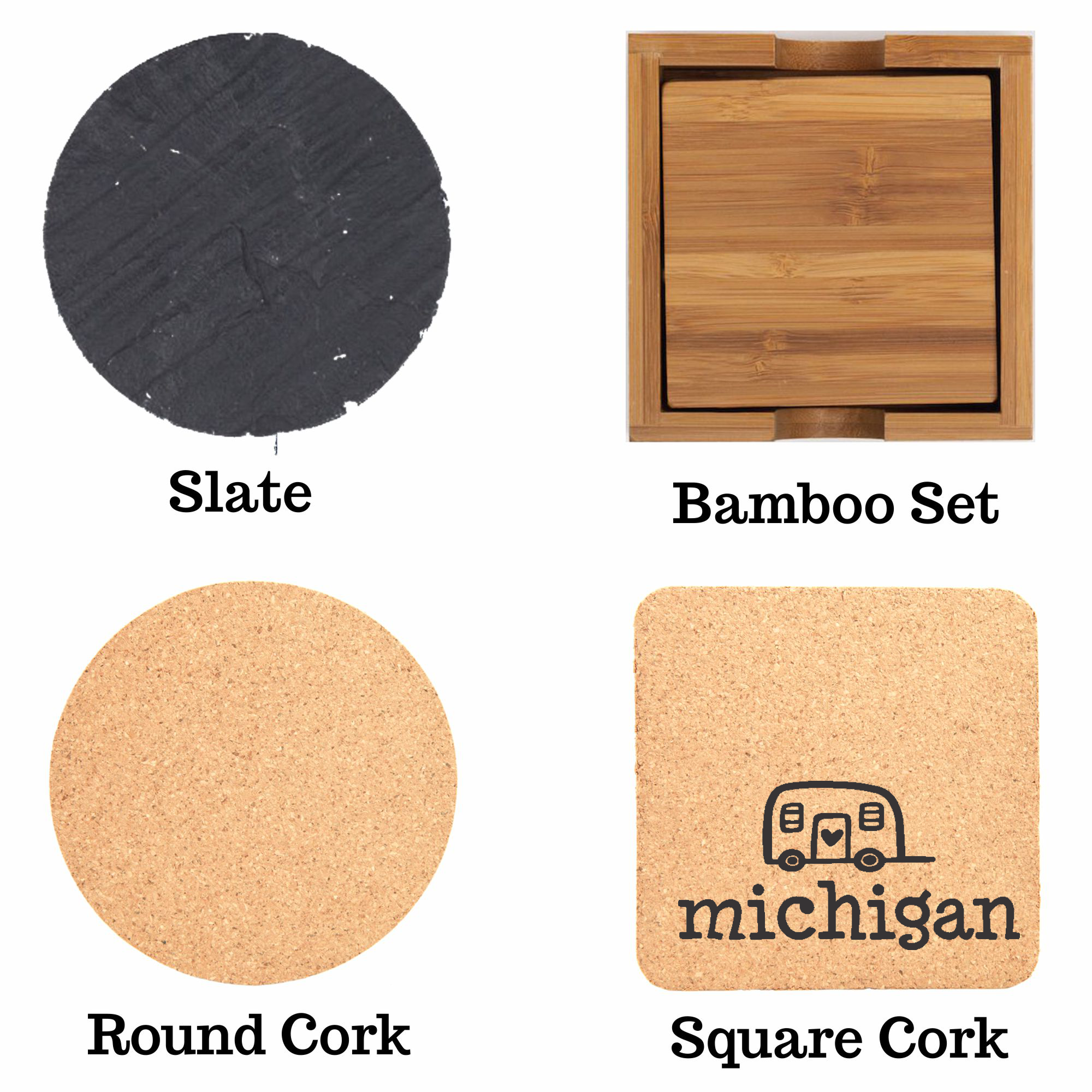 Size: 4"x 4"x 1/4". Quality: 100% recycled wood source. Sustainable: We make them strong (1/4" thick) so that they can be re-used forever. Made with sustainable inks and a UV coating, as well as, an eco-friendly lacquer that covers the entire coaster to permanently protect the wood. They also have recycled rubber stoppers on the bottom for grip and support. Care: Washable with soap and water.