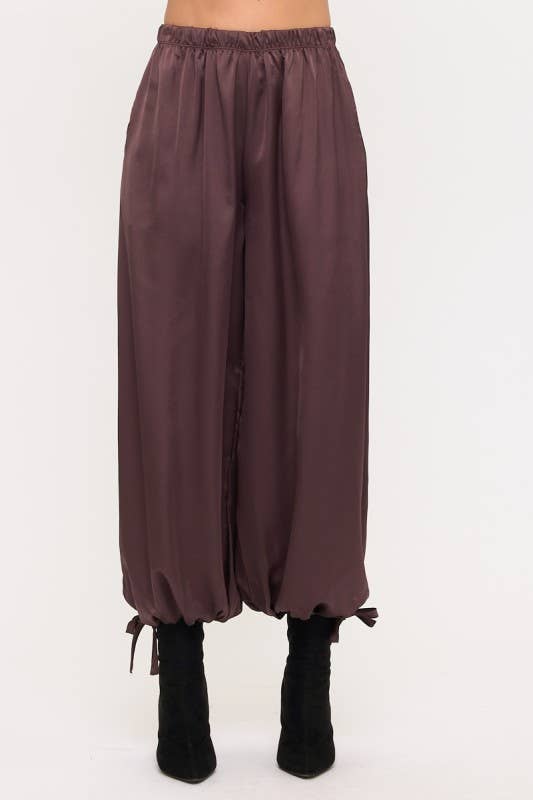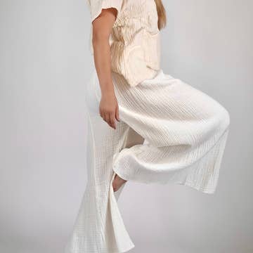 Ruched Waistband Wide Leg Gaucho Pants