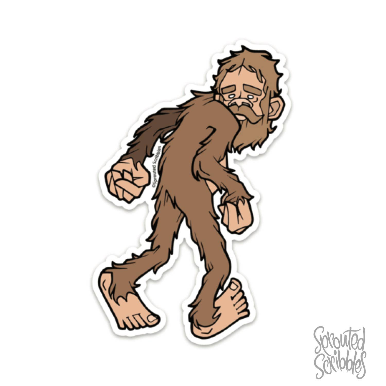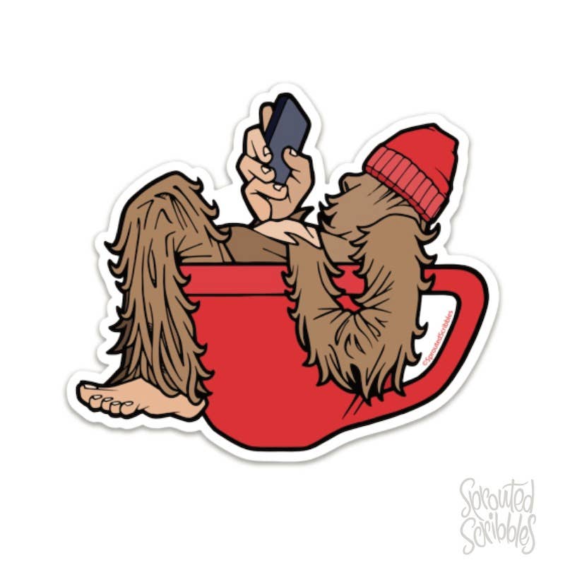 Cute Bigfoot Sticker Backpacking Outdoor Decal Human Drawn Design