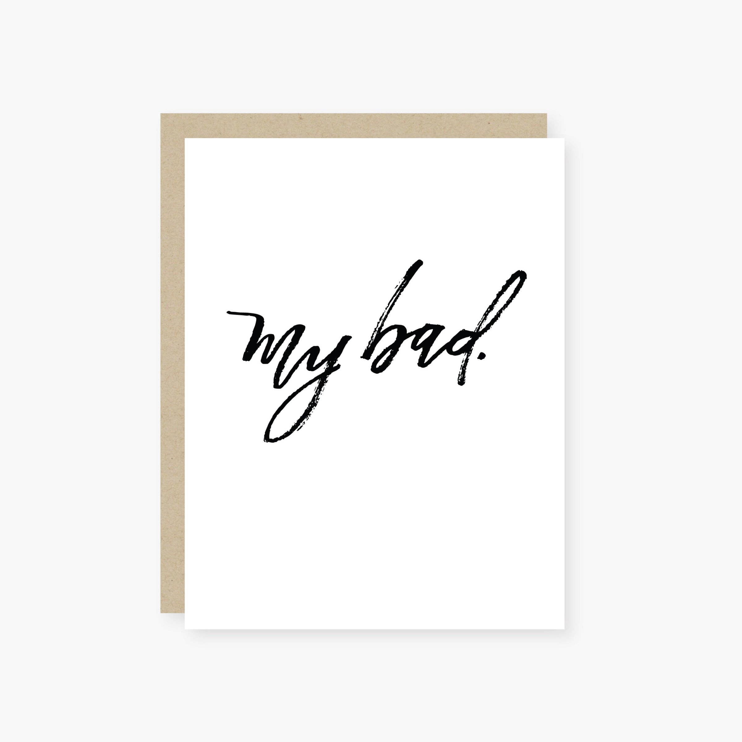 OUTSIDE: sorry i got mad at you for no reason, INSIDE: blank, CARD SIZE: (A2) 4.25 x 5.5”, MATERIALS: 110 lb recycled paper + recycled kraft envelope
