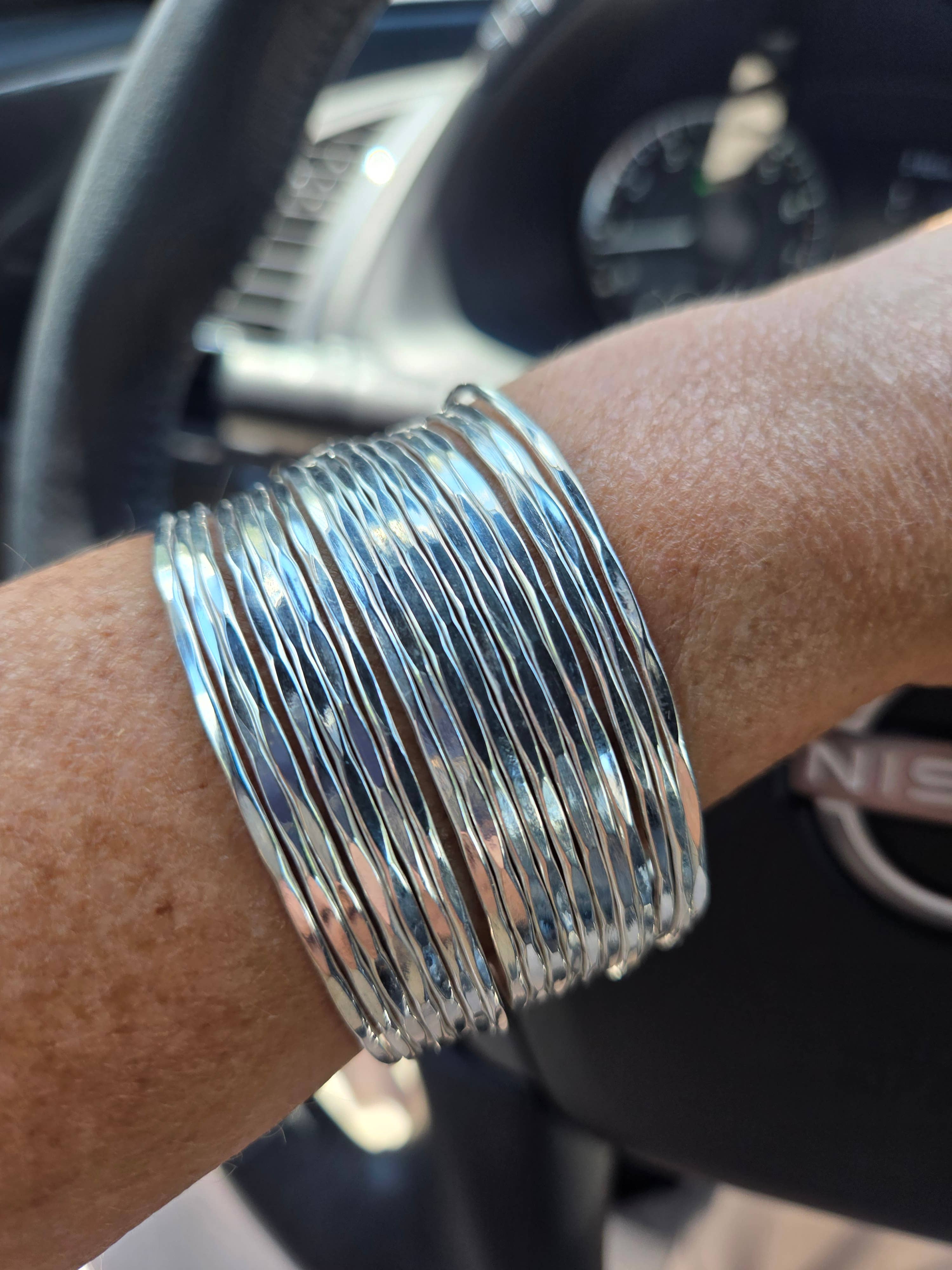 Silver Hammered Dotted Cuff Bracelet