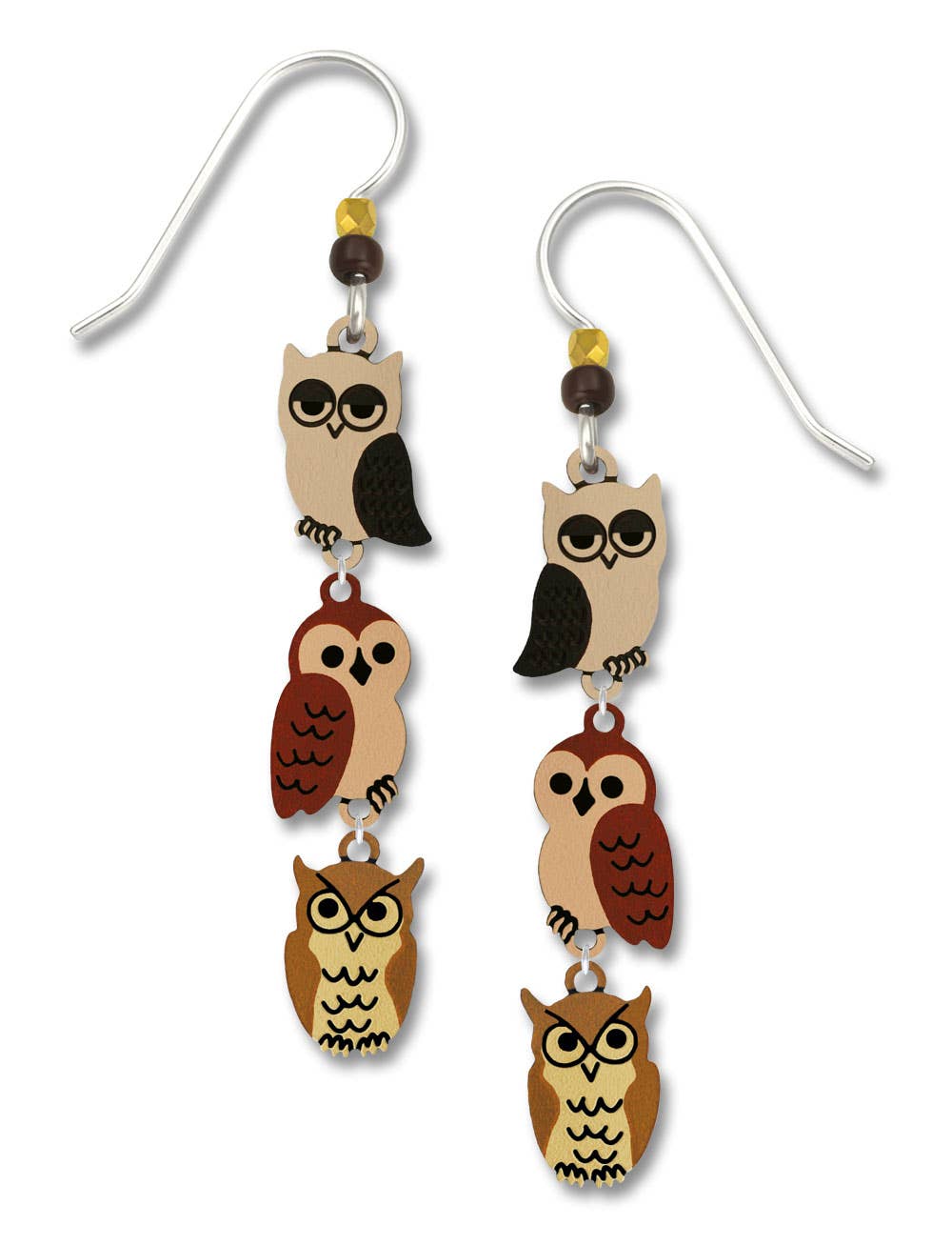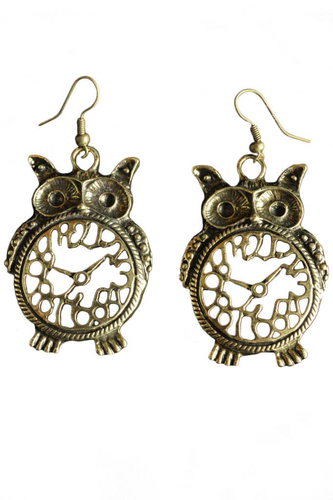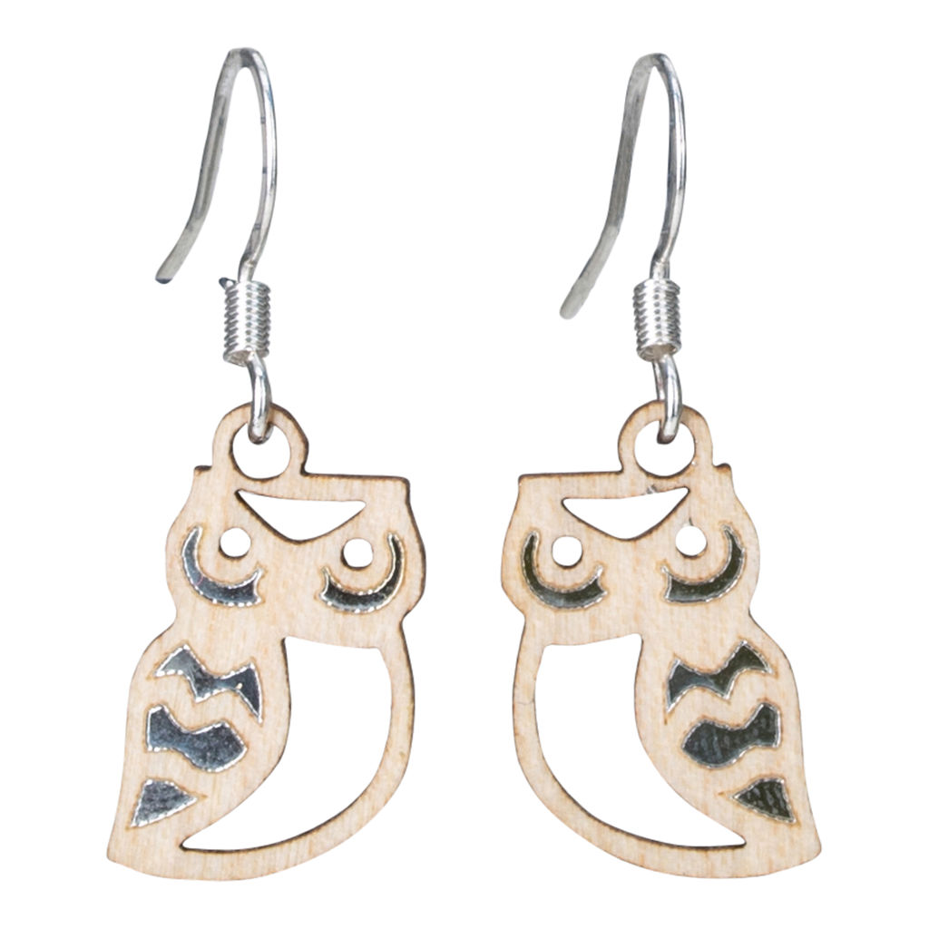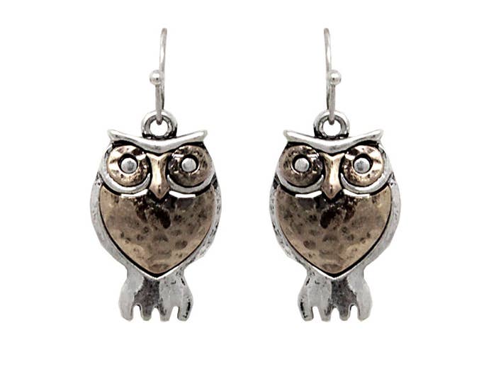 Wholesale Owl Face Twig Earring with Silver Foil Accent