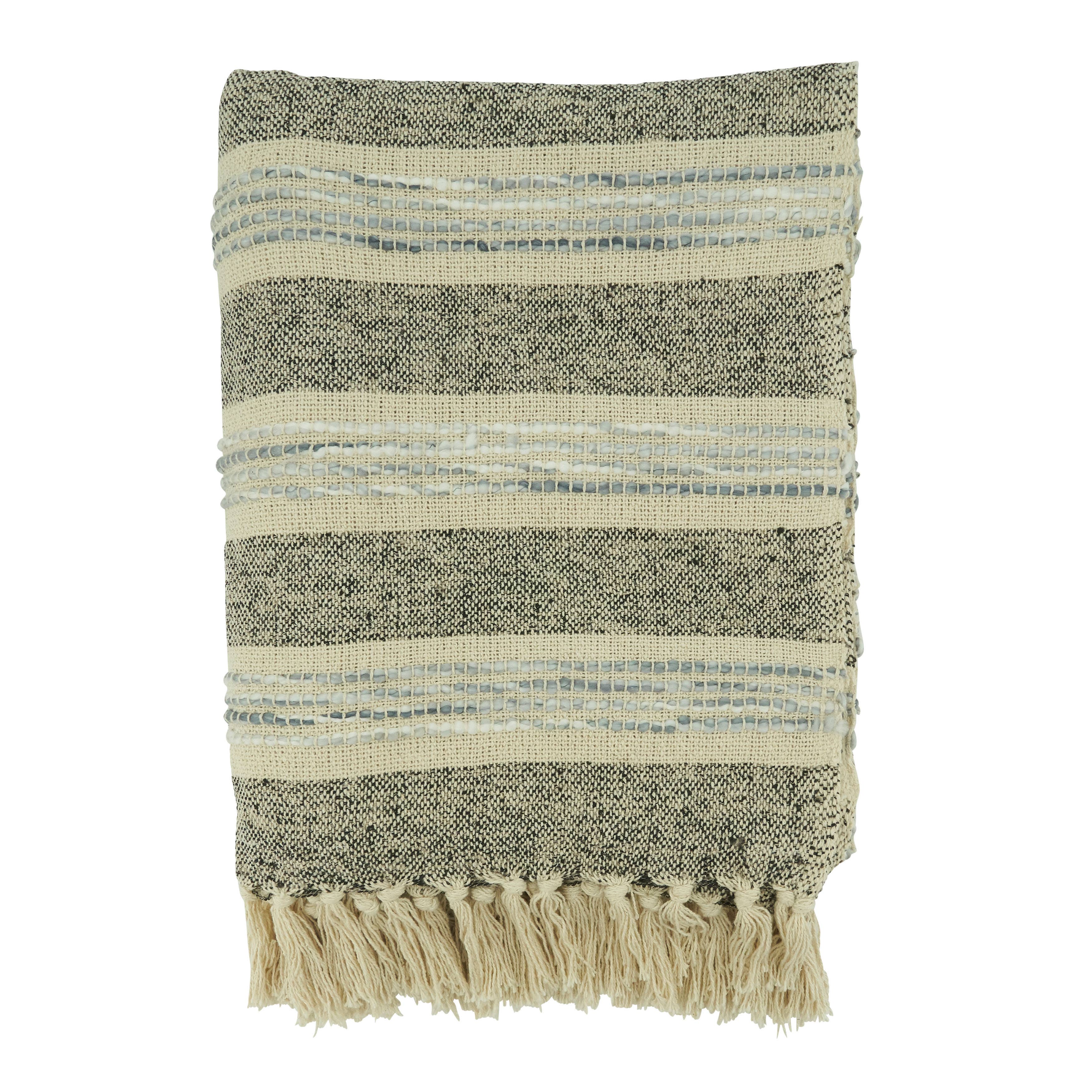 SKU: BL-TRW-36 Made in Ecuador Care Instructions: Dry clean only Color: Gray and Multi-Colored Occasion Theme: Christmas, Everyday, and Valentine's Day Pattern: Striped Season: Fall and Winter Style: Modern Theme: Travel & Adventure Weaving: Plain Weave Product Language: English Weight: 0.54 kg (1.2 lb) Dimensions: 177.8 x 127 cm (70 x 50 in) Product Materials: Organic Production: Ethically sourced and Fair trade