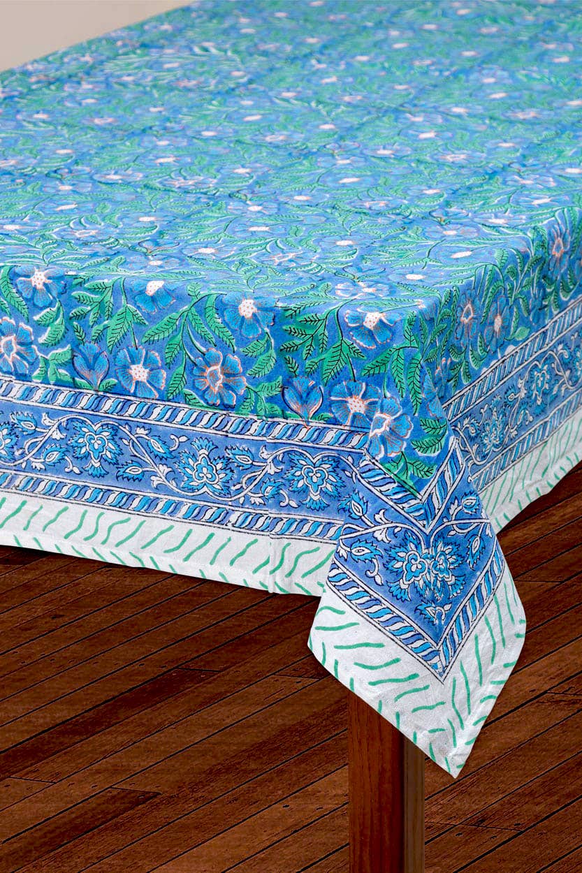 Tablecloth Block Printed Organic Cotton - Navy Lotus