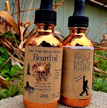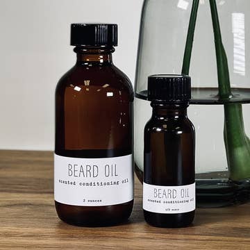 1 ounce bottle. NO Sulfates, Parabens, Phthalates, Mineral Oil, or Alcohol. This beard oil will help without leaving your beard or skin feeling greasy or oily!! Usually the skin under your beard turns itchy and red because it becomes too dry from soap residue or from bacteria that is not washed away. My blend of oils is special; from organic grapeseed oil which quickly absorbs into the skin and beard hair taking with it nourishing Sweet Almond Oil, Avocado Oil, and Vitamin E. There are 3 formulas to choose from: Revive: This formula contains PURE essential oils of Lavender, Tea Tree, and Peppermint. All these essential oils are known to have beneficial effects on both hair and skin. Recommended for problem or sensitive skin. Havana: This formula contains a phthalate FREE fragrance oil. Think of Cuban cigars or old pipe tobacco...sweet and sensual. (Matching soap) Rugged: (my personal favorite) a sensual oriental musk smell that women love! (Matching soap)