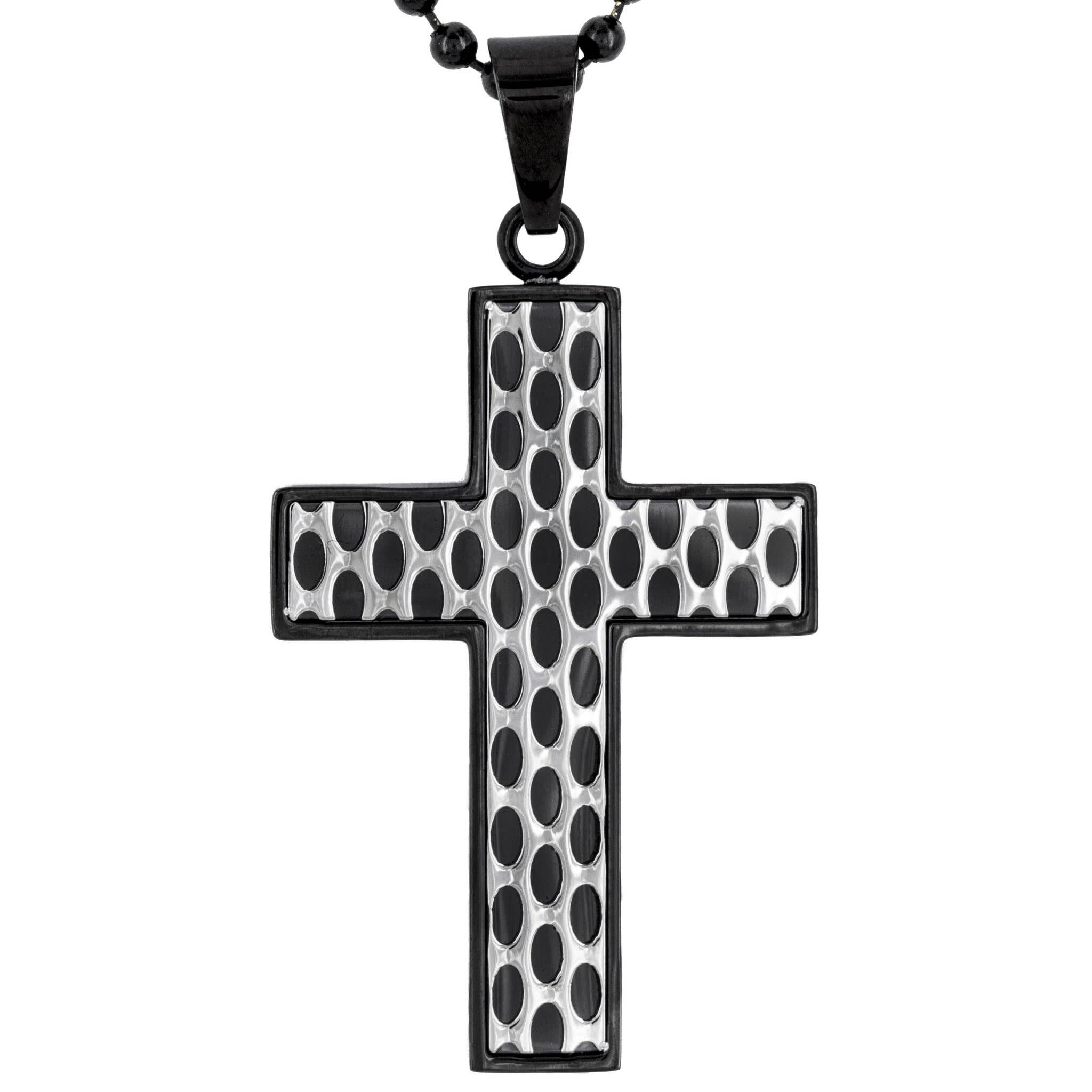 Simple yet elegant, this elongated cross necklace can be worn with any style. The polished necklace us crafted of stainless steel and has an elongated cross connecting to a cable chain necklace. The necklace has a length of 17 inches with a 1 inch extension and fastens with a lobster claw clasp. The cross measures 1 9/16 inches long by 3/8 inches wide.