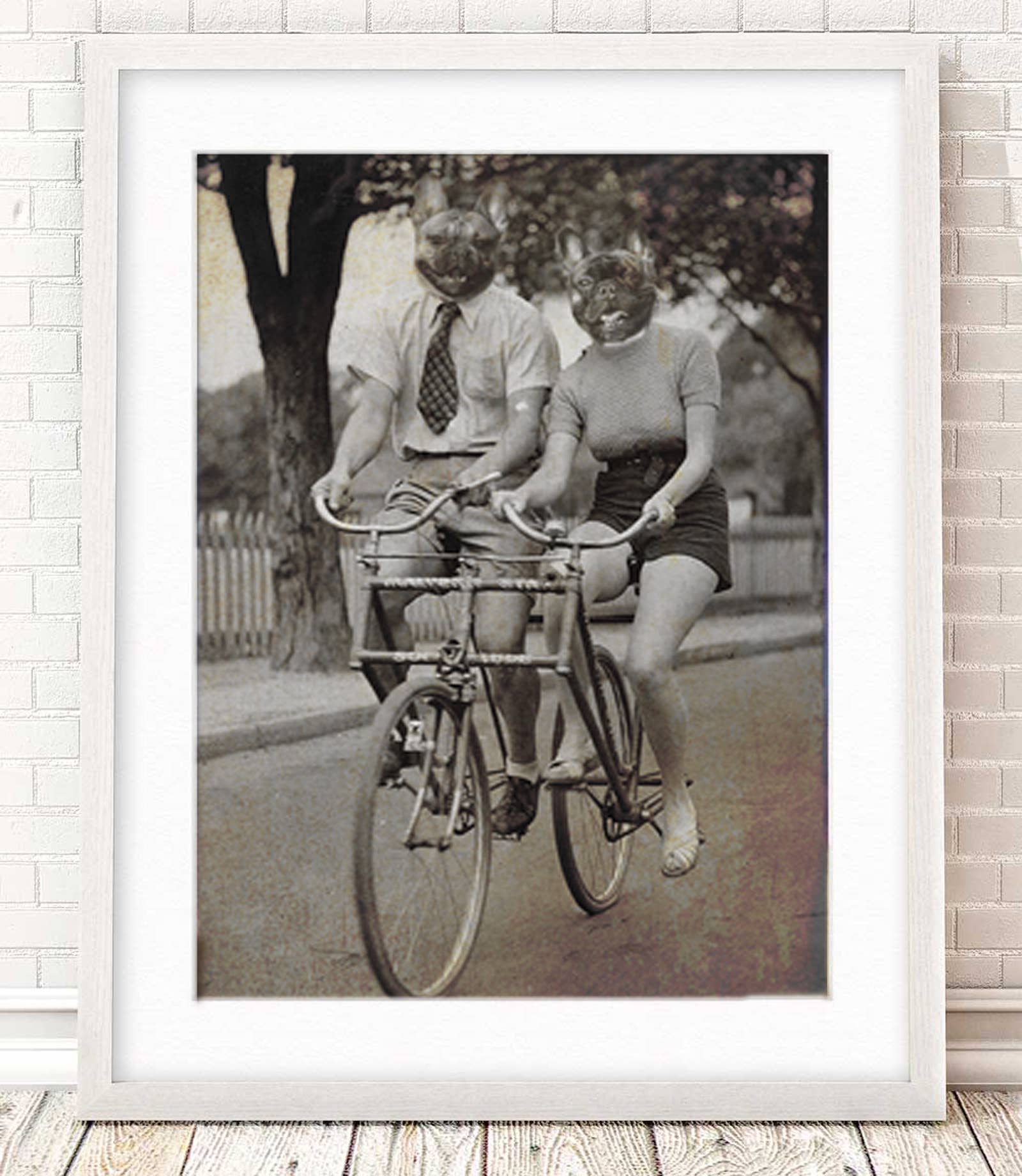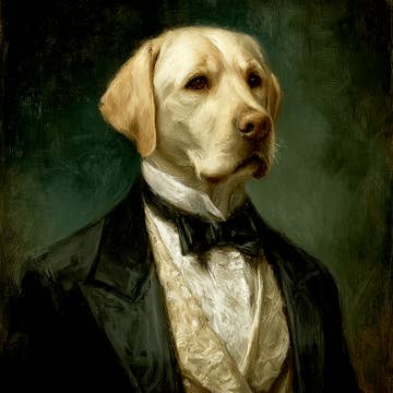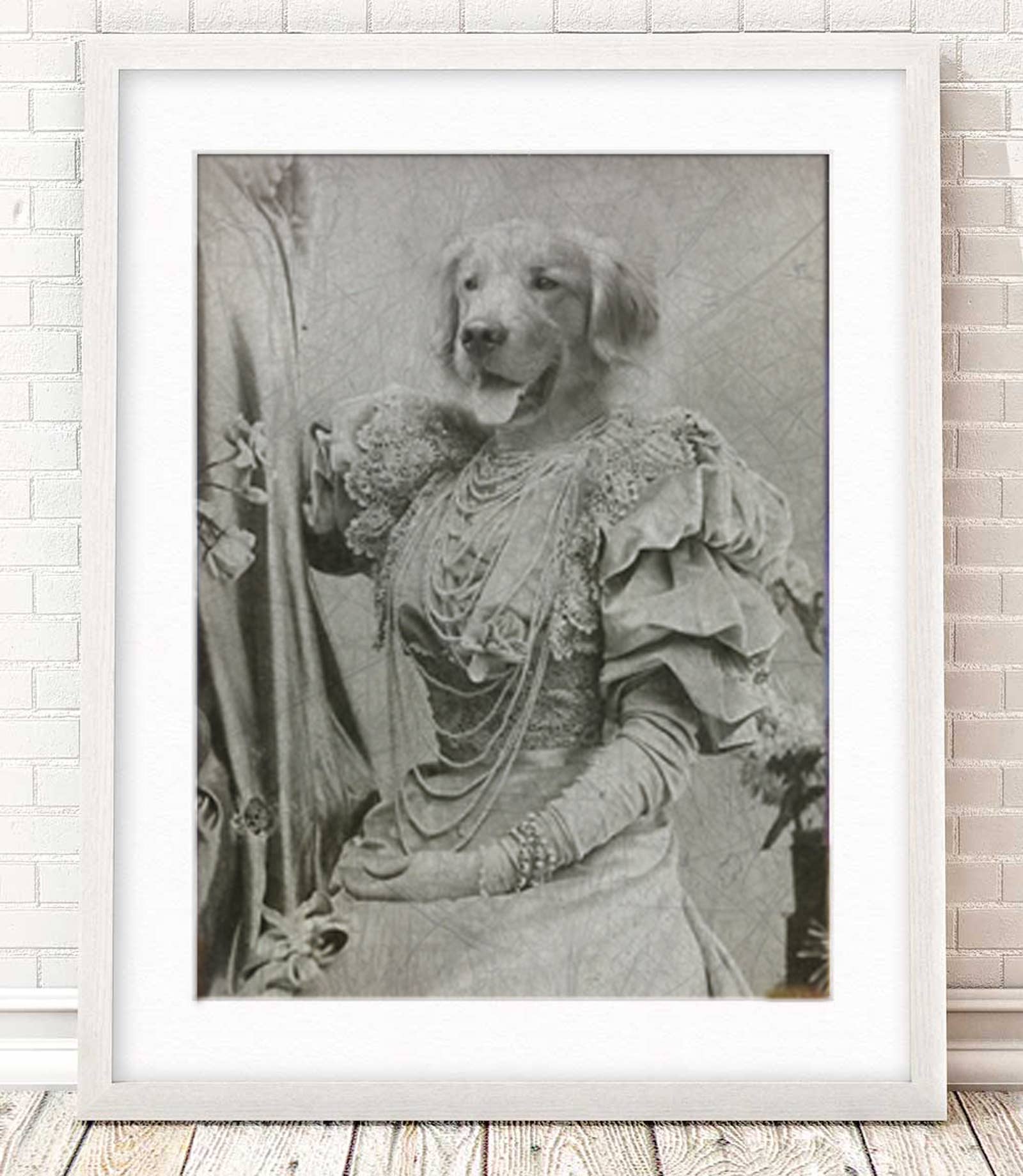 Unique art to please the unique characters in us all! These Matte prints are archival and superb in quality and acid free. Artwork has the same quality as a real photograph. Here are some great ideas to display/give your custom artwork: ** Hang it in your foyer as guests come into your home. ** Sneak it among your family portraits and watch your friends reaction. ** Give as a gift and watch the recipient giggle uncontrollably! I guarantee they will last over 200 years when taken care of. Prints come in a clear bag with board backing to ensure longevity. I combine real antique photographs with photographs of pets and wild animals to create cute and sometimes creepy artwork guaranteed to spark a conversation and reaction! I use Photoshop to digitally paint the images together and add textures that I have photographed for an extra vintage feel. Creepy Cute, Lab Dog Puppy