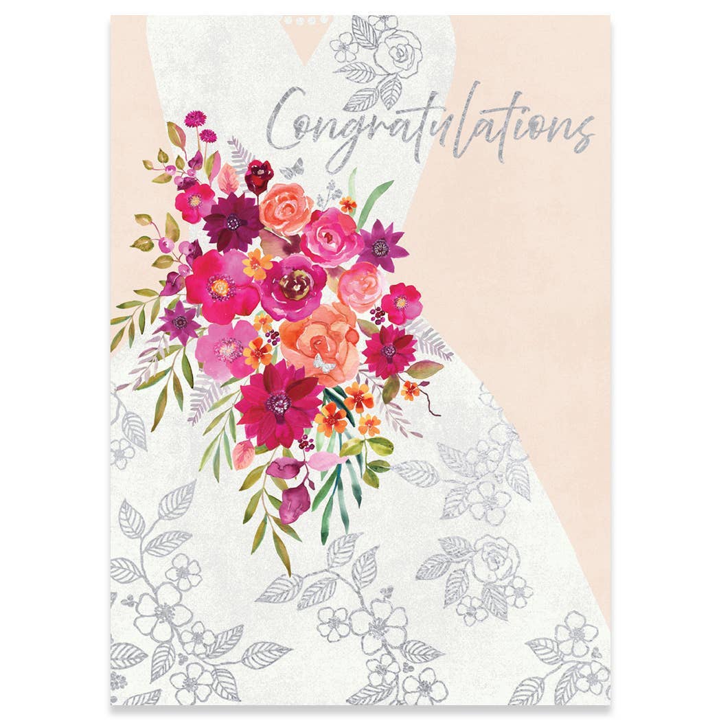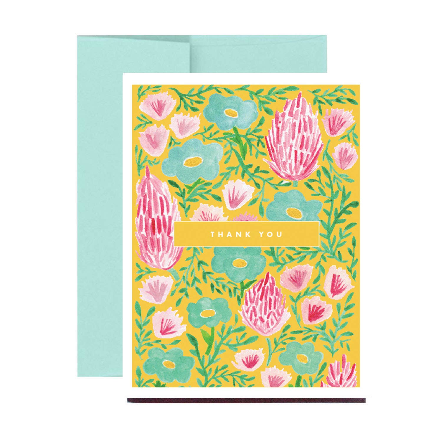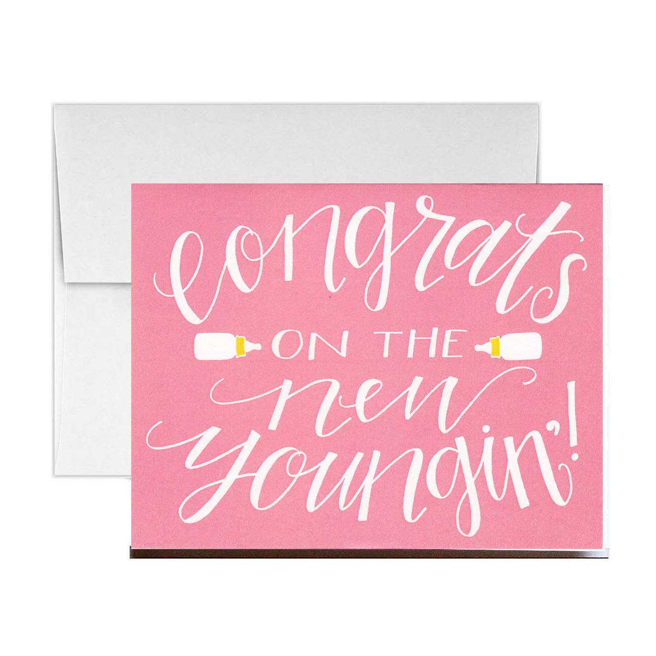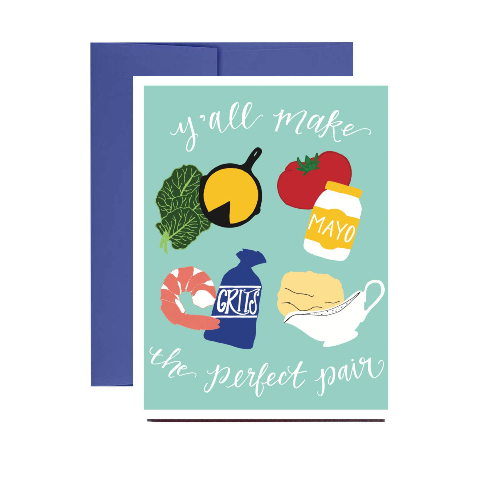 A2 (4.25” x 5.5”). Flat printed in Birmingham, Alabama on 120 lb. uncoated paper. Packaged in a cello sleeve with a coordinating envelope. Blank inside.