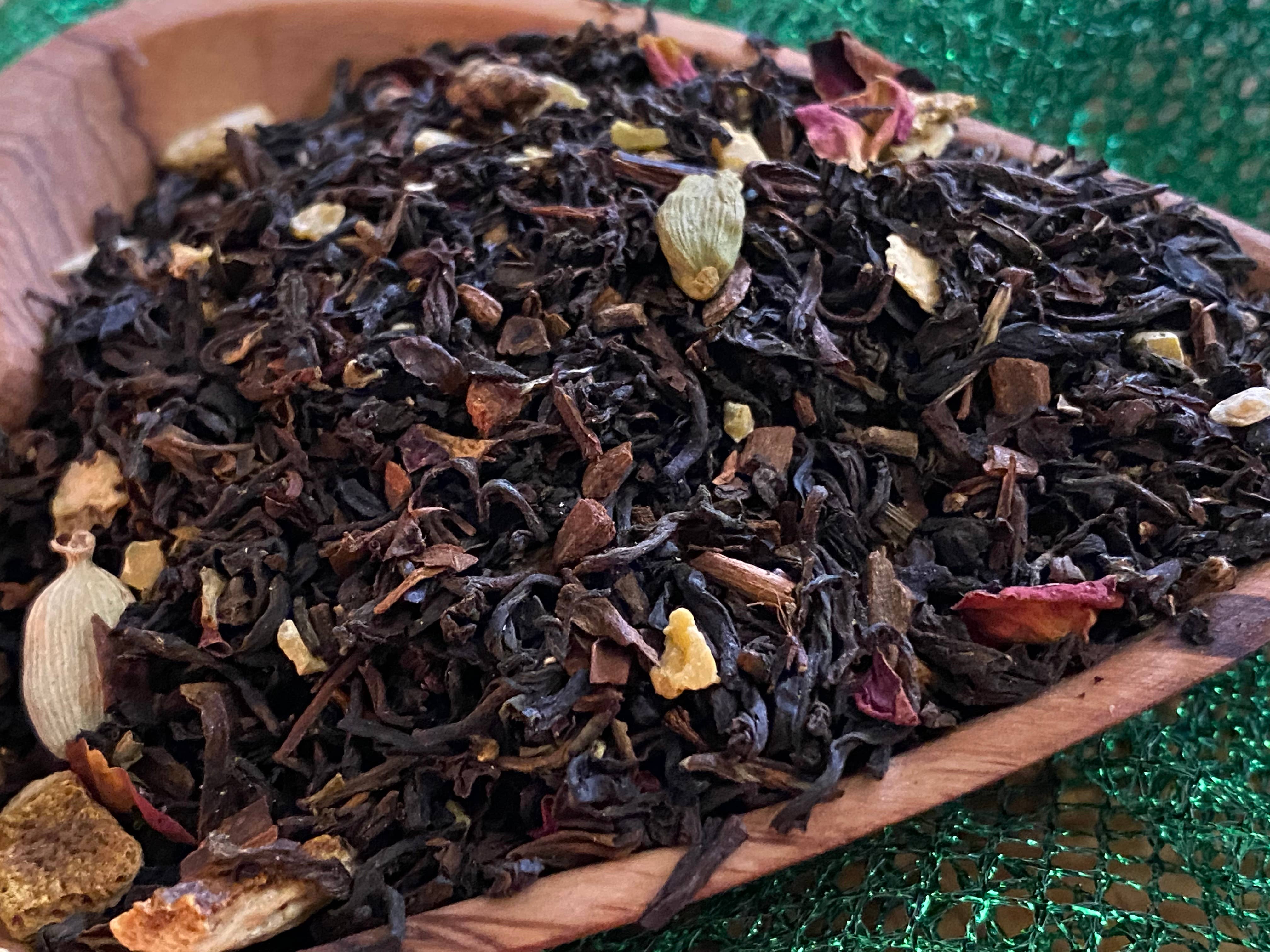 Get cozy in front of a glowing fireplace while snowflakes dance and tree lights twinkle. Reminiscent of a homemade bundt cake fresh from the oven, this comforting cup blends an aromatic black tea with soft vanilla, creamy almond and warm spice. One sip from this steaming cup of tea completes the perfect winter wonderland. Black tea is rich in antioxidants and health-promoting properties.