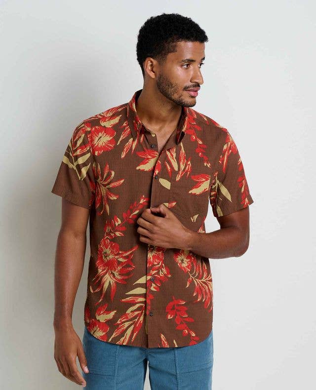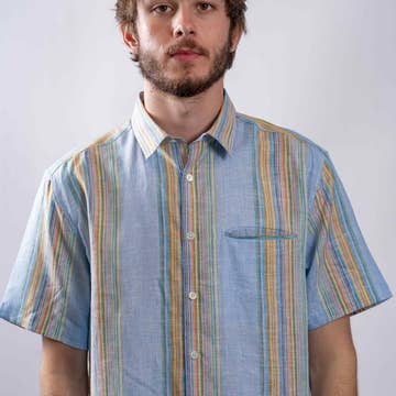 A short sleeve men's button down shirt in a salmon pink woven cotton. Gentle tapering at the waist with a straight and narrow profile and a broader fit in the shoulders gives this shirt the perfect fit for spring or summer. This shirt is a great Father's Day gift! FIT * First model is 5'11" and wears S. Second model is 5'11 and wears M * Slim fit, if you're in between sizes, we recommend sizing up * This fabric does not have stretch * Plus size clothing available FABRIC & SUSTAINABILITY * 100% woven cotton * Handwoven and hand dyed * Fair trade * Our clothing is handmade so there may be a 5-10% shade variation between the product pictures and what you receive WHERE IT'S MADE * Designed in New Orleans * Handmade in India