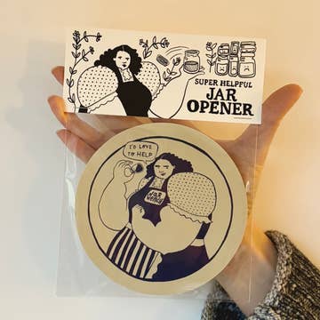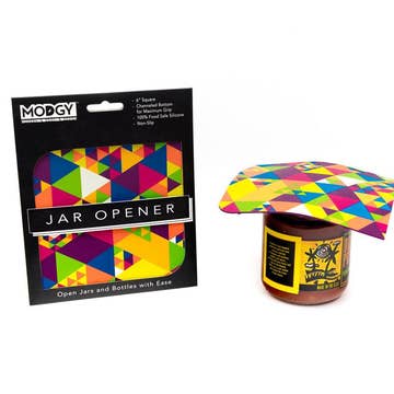 Lid Stuck? We can help! Whimsical and practical. That’s what Modgy’s new Silicon Jar openers are. In festive colors and fun prints, Modgy Silicone Jar Openers are made out of 100% food grade super grippy Silicon. Weight: 2.5 oz. Dimensions: 6" X 6". Materials: 100% Silicone. Included: One Silicone Jar Opener with graphic print per retail sleeve. Care: Dishwasher Safe, or hand clean with warm soapy water.