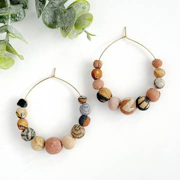 Made by women of Indonesia antiqued beads easy hoop earring . Glass beads.