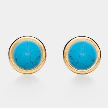 Turquoise Bright Blue Tiny Disc Stud Earrings