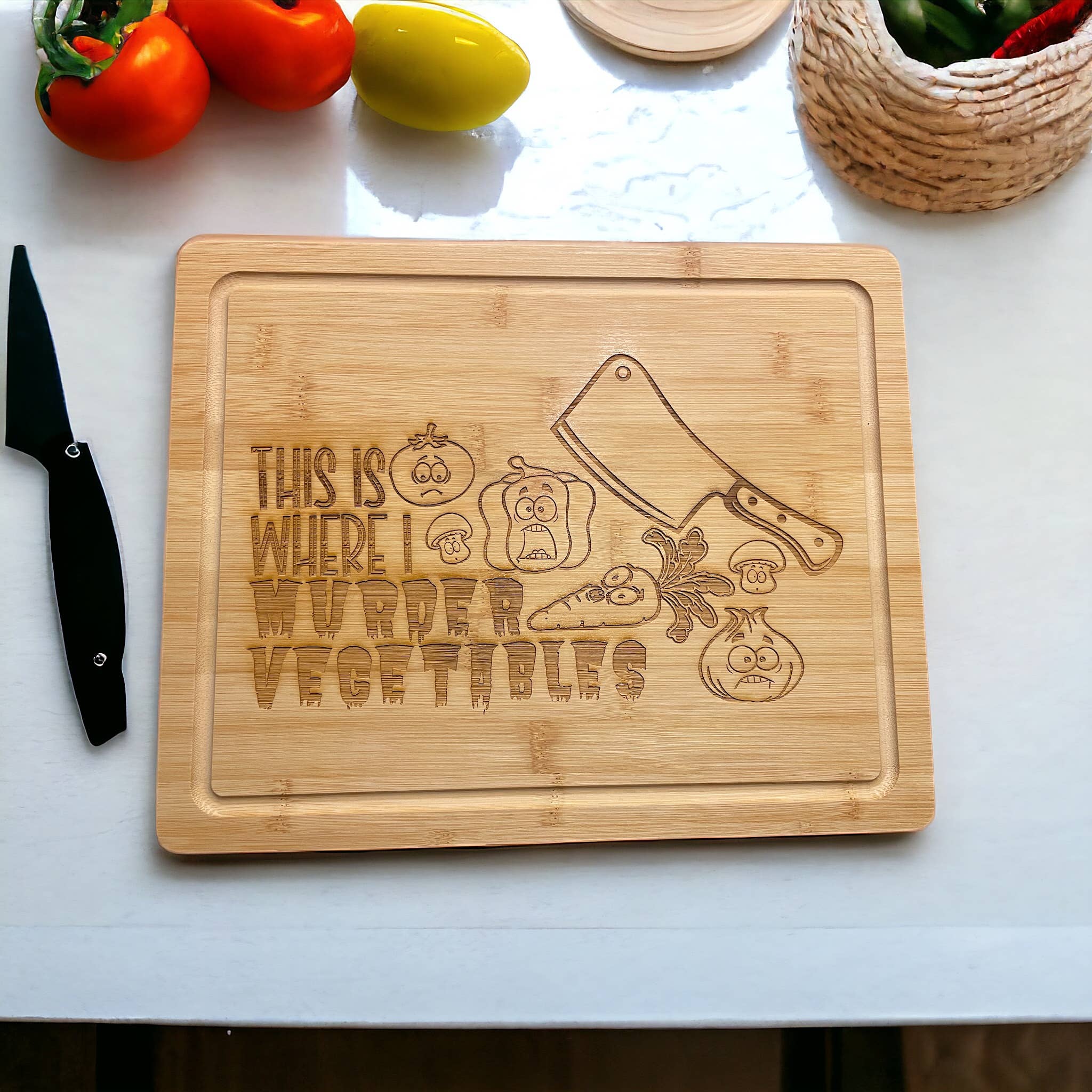 I'm Gonna Fuck this Food Up - Bamboo Cutting Board The board says it all... put that food out and watch your guests fuck that shit up. Laser Engraved Design. High-Quality Bamboo Cutting Board measures 13.75 x 9.75 inches.