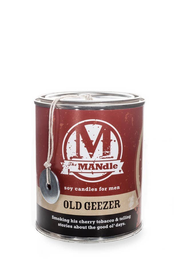 SKU: MAN15DH Made in United States Benefit: Relaxing Burn Time: 90 hours Color: Multi-Colored and White Fragrance Family: Earthy & woody Handmade: Yes Ingredients: 100% soy wax. Phthalate-free fragrance and essential oil blends. Material: Tin Number of Wicks: 1 Occasion Theme: Everyday and Father's Day Occasion: Father's Day Scent: Earthy & Woody Season: Year-Round Size: 15 oz Style: Industrial Tone: Funny Wax Type: Soy Wick Material: Paper, cotton, hemp Product Language: English Weight: 0.52 kg (1.15 lb) Dimensions: 8.9 x 8.9 x 10.2 cm (3.5 x 3.5 x 4 in) UPC: 700587116612 Product Materials: Plastic-free, Recycled, and Vegan Packaging: Plastic-free, Recyclable, and Recycled