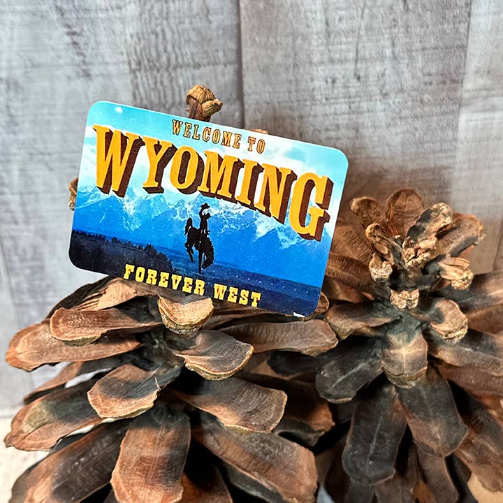 Greetings from Wyoming vintage postcard 4 piece coaster set with cork backing, 3.75" X 3.75". Come in brown kraft box with window. Easy to display and sell!