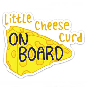 This super cute, vinyl Baby On Board car magnet features our Wisconsin-themed "Cheese" artwork! This large car magnet is perfect for any Wisconsin parent and makes a cute baby shower gift for any little cheese curd! Our waterproof and scratch-resistant magnets stay on through car washes and make it clear to emergency personnel that there is a baby in the car. Each of our cheerful vinyl magnets is joyfully designed and printed in the USA. Waterproof, Scratch-resistant Vinyl Magnet Professionally Printed In The USA Color - Yellow/blue Size - 4.48" x 5.5"