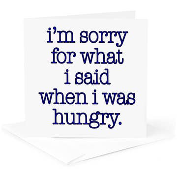 Outside: Sorry I haven't hung out in a while (I've been reading). Inside: Blank. Size: 4.25" x 5.5". Paper: bright white, recycled, heavyweight. Envelope: recycled, matching. Ink: Archival. Comes in a clear sleeve for protection. Size: A2.