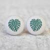Monstera Fabric Button Earrings