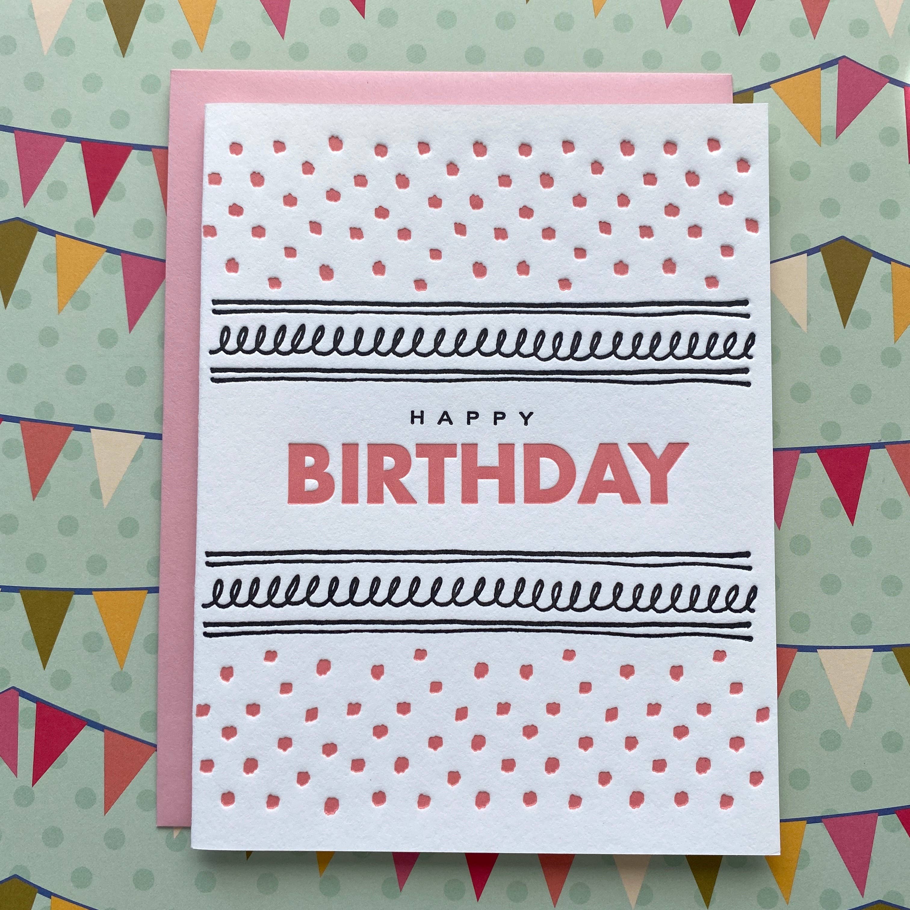 Each card was printed by hand on a vintage platen letterpress. Card comes in sleeve. Folded note card and coordinating envelope. Hand mixed inks. Letterpress printed on 100% cotton cardstock, recycled envelope. Size - 5 1/2"W x 4 1/4"H (A2 size).