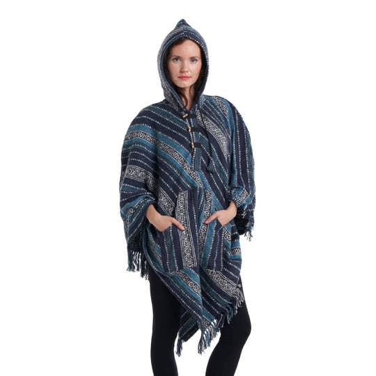 Experience the ultimate blend of comfort and style with Swanque's Fringed Hooded Laced Mantoque. This adult poncho is meticulously handcrafted from top-notch Polartec® fleece, ensuring durability and warmth in chilly weather. The design features a stylish hood and intricate lace detailing, adding a touch of elegance. With its fringed edges, this poncho is a perfect statement piece for your wardrobe. Embrace the eco-friendly production methods of Swanque, as we prioritize the use of recycled and upcycled materials. Step out in style while making a positive impact on the environment!
