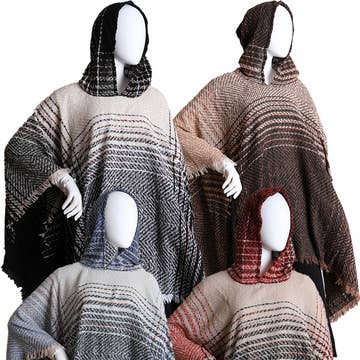 Swanque - Wholesale Poncho - Women's - Fringed Hooded Laced Mantoque - Adult0