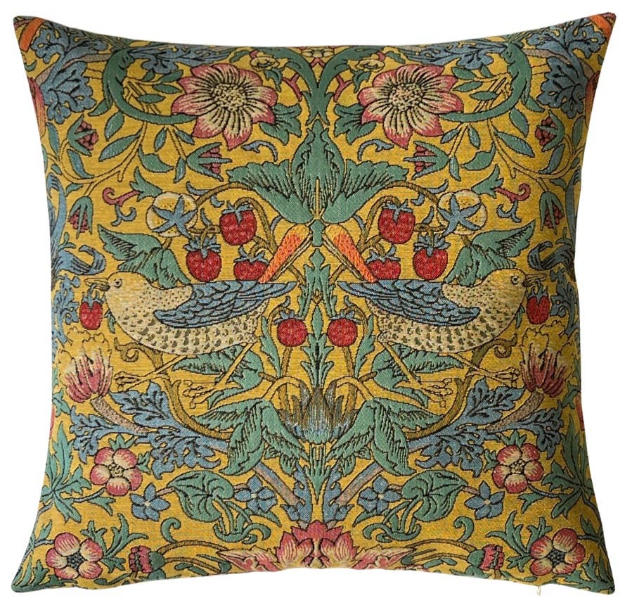 The fabric of this pillow cover is woven on jacquard looms using cutting edge weaving technology in Belgium, which has been the cradle of tapestry weaving since the 15th century. The jacquard technology allows us to reproduce the finest details in the most vibrant colors and color shades. All pillow covers are hand finished in our ateliers. - Size : 18”x18” - Lined with a plain beige flat velvet fabric - Closes with zipper - Composition : 86% cotton – 14% mixed yarns - Dry clean only - Stuffing not included. - Part of a line of 5 pillow covers showing the 5 senses