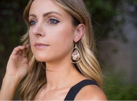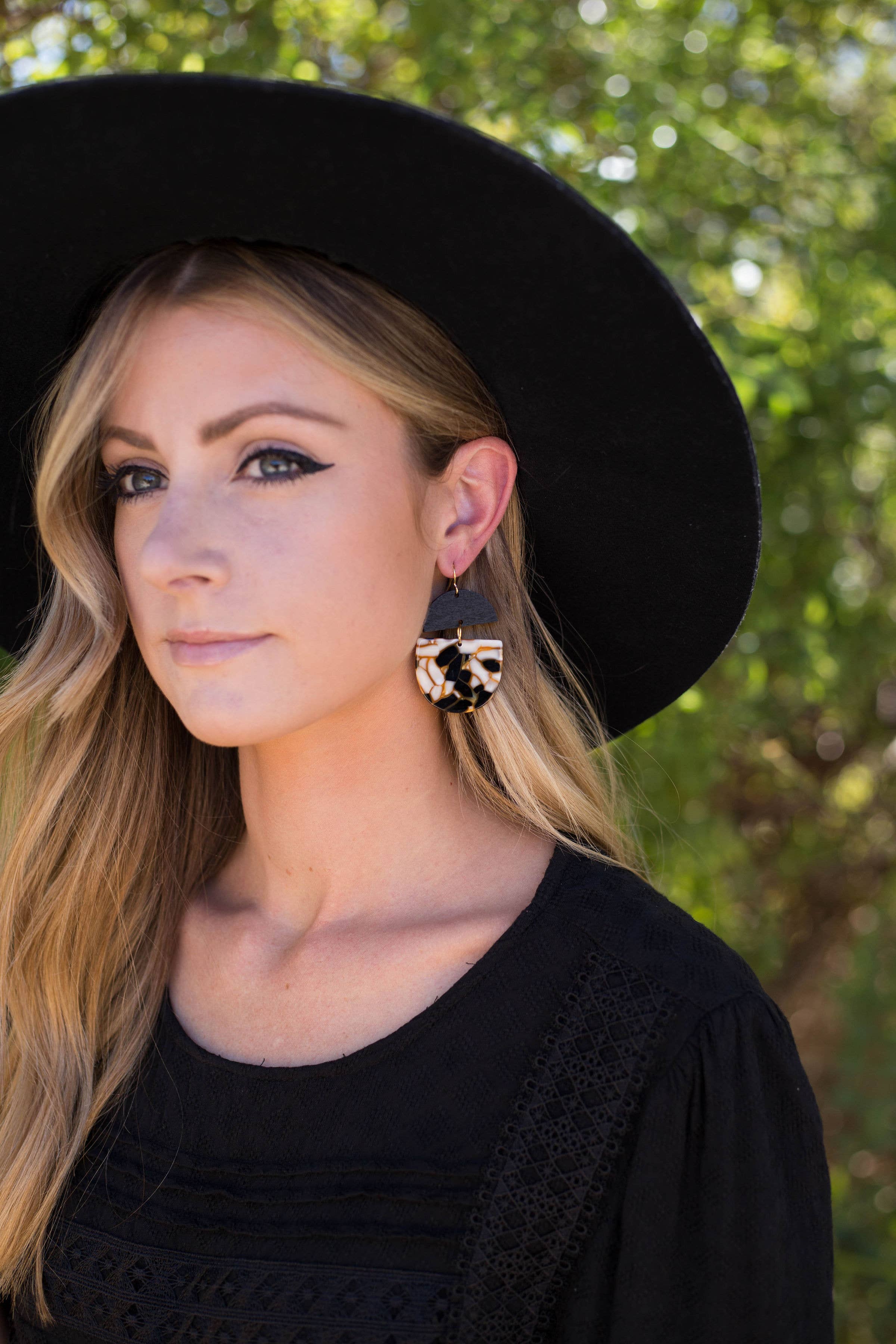 These acrylic encased baubles are a lightweight statement in a gorgeous material. They measure 2 inches from top of gold to bottom of acrylic, not including earwire. Due to the acrylic, each pair is unique. Please allow for slight variations from the photos due to the material