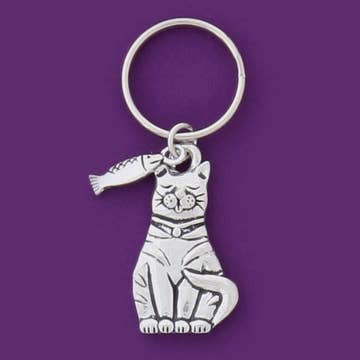 This charming pewter keychain features an adorable cat design playfully interacting with a fish, set against a vibrant purple background. Its intricate detailing and durable material make it a delightful accessory for cat lovers, while also serving as a practical item for securing keys. The unique combination of whimsical art and functionality ensures that this keychain will be a cherished addition to any collection. Keychain comes in a poly bag. Handmade By The Sea! 10% of profits fund charitable organizations.