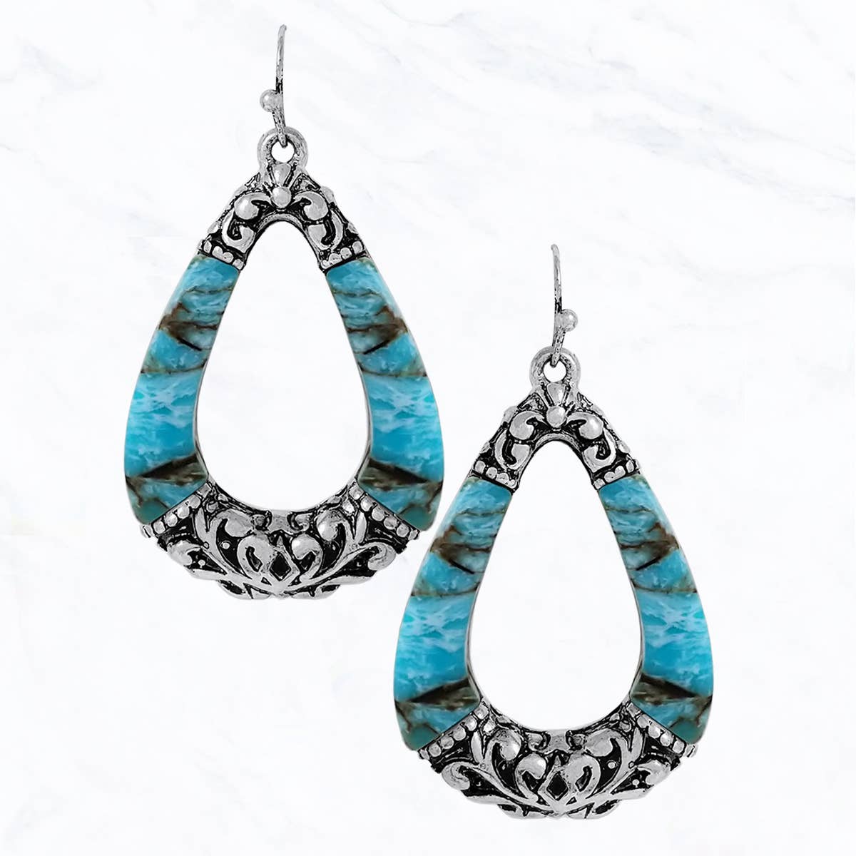 **Leather Teardrop Earring-Oyster Paisley 203h