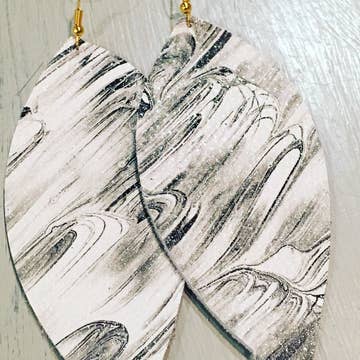 Looking for handcrafted artisan jewelry to add to your collection of boho accessories? These genuine leather earrings are the perfect complement to your boho or Western-inspired style! * Made with genuine leather cut from large leather hides. * Nickel and Lead-Free hooks * These handmade leather earrings are lightweight and flexible, so they are comfortable to wear. * Made in TEXAS * Upcycled leather--we use the leather leftover from cutting belts and handbagss to create earrings instead of discarding it. * Teardrop sizing: Large: Length: 2.75" Width: 1.75" Small: Length 2" Width 1.25" * Every Jewelry Junkie piece is handmade. While the item that you receive will resemble the photo, no two items sold are identical. * When purchasing an item from our Navajo Leather collection the pattern and colors will vary based on the area cut. Please see the last photo shown on navajo listing for a photo of the actual hide. * When purchasing an item from our Hair-on-Hide collection, colors will vary based on the natural colorings of the hide used--these are real cowhides and will reflect the genuine nature of the product.