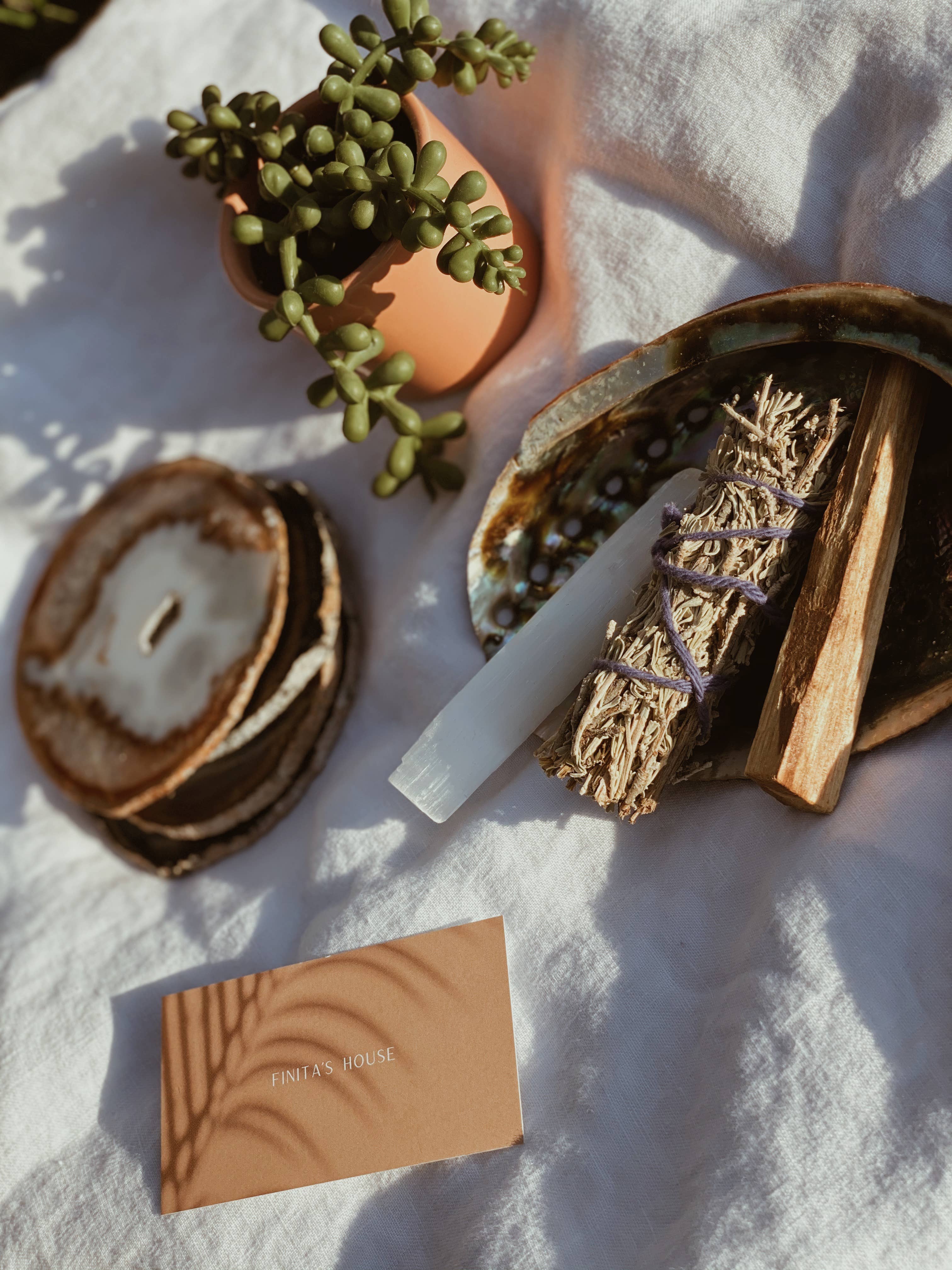 I love these pieces and can't wait to sell them to my customers. The coasters are solid and very well made with a good weight to them. The design and neutral color palette are beautiful. The sage kit is the perfect size and I'm very pleased with the quality. Arrived on time and well packaged. Will definitely be ordering again!
