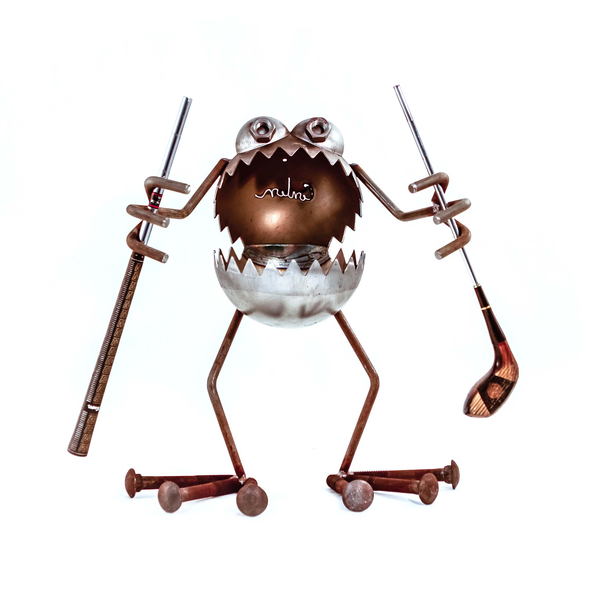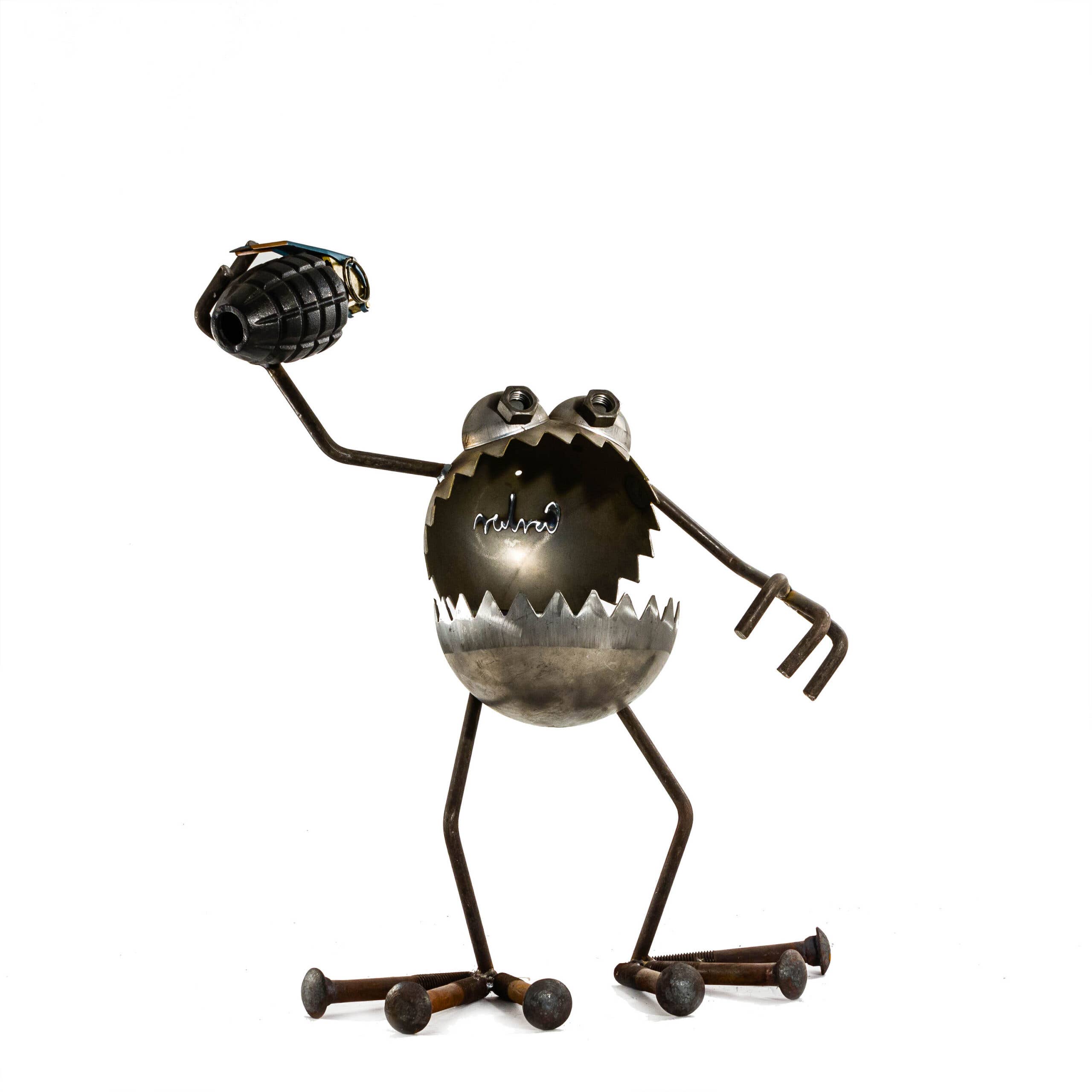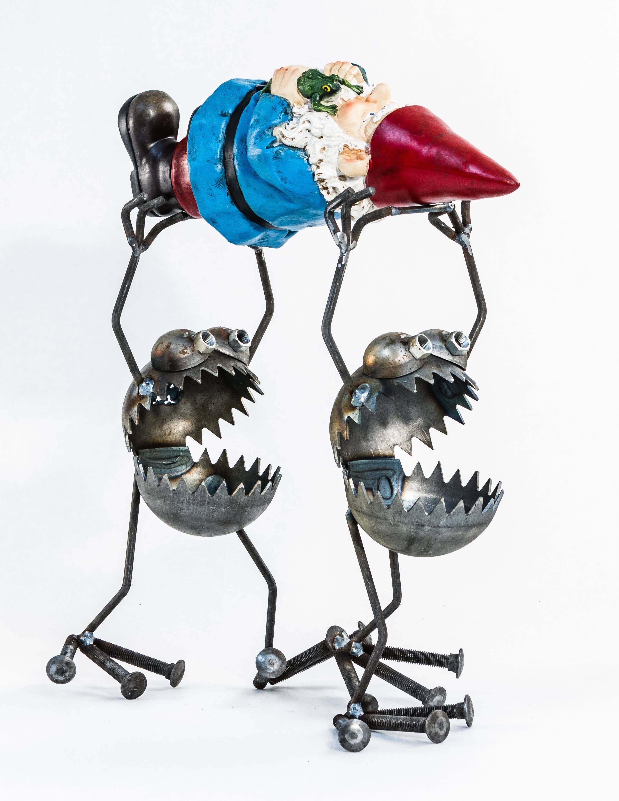 Large GBG monster handmade from steel components. Approx. 24" tall. GBG set with extra large resin gnome feature.