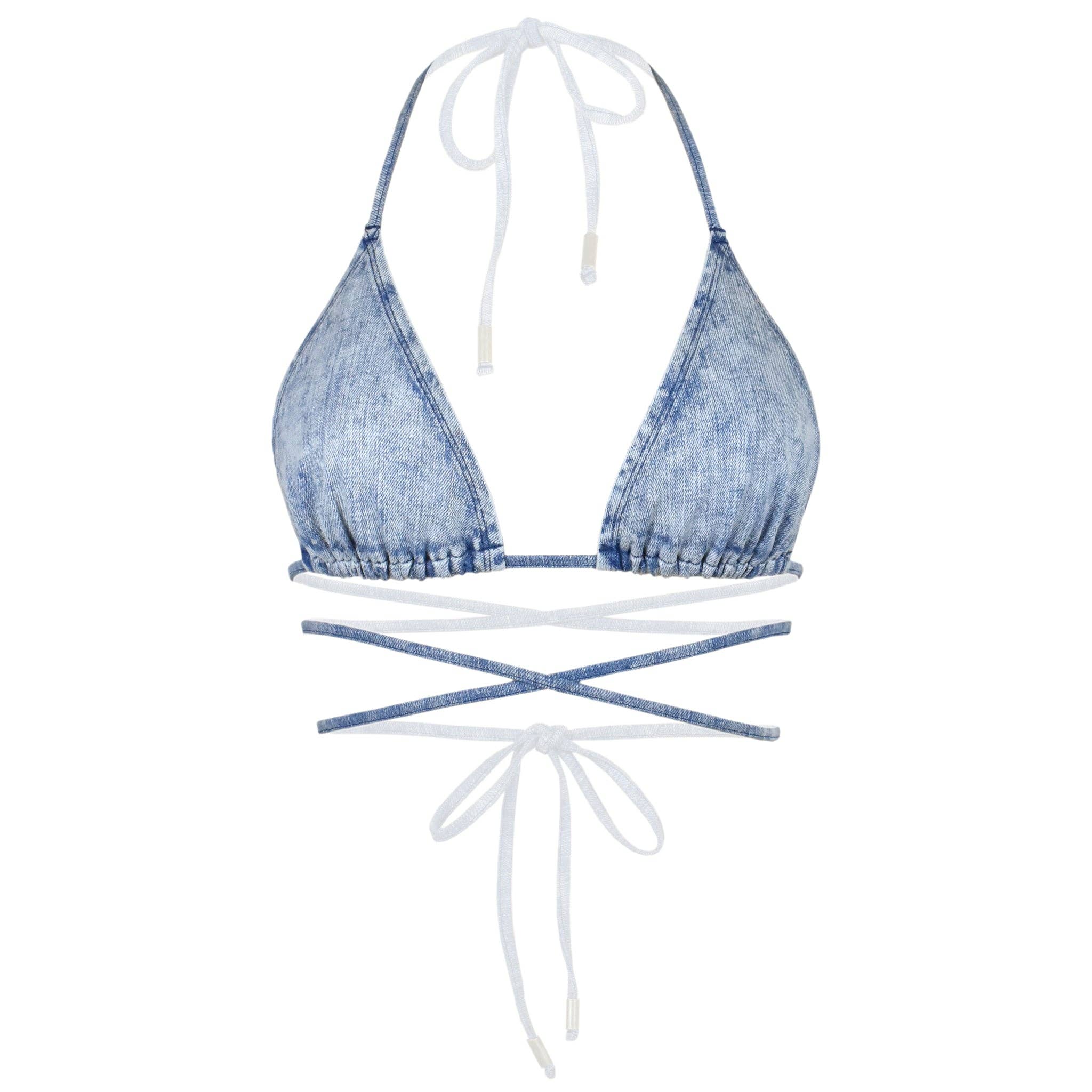 Bikini top with off-shoulder details. Removable padding and removable straps.