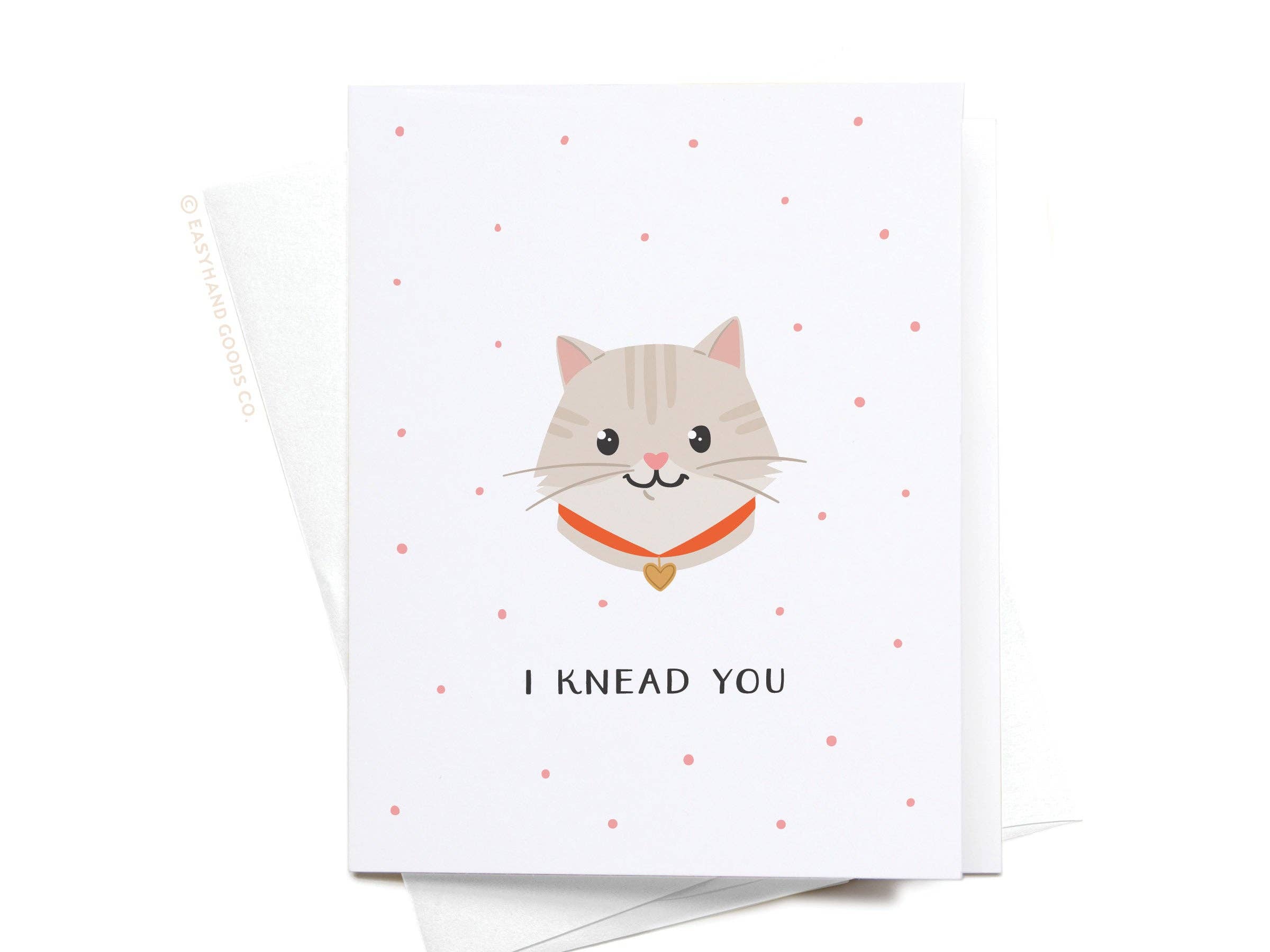 "I knead you". This cute cat kneading biscuit on the blanket card is perfect for cat mom and cat dad for Valentine's day, anniversary, birthday, or just because I love you! -Boutique A2 size (4.25" x 5.5")  Saves shelf space • Blank inside for any occasion -Heavyweight FSC-certified paper  Premium quality • Eco-friendly -Matching envelope included  Packaged in clear cello • Plastic-free option available -100% handmade in California, USA  Original artwork • Not sold on Amazon or big box stores **Resellers welcome to use Liyana Studio’s descriptions and images for online listings and social media.