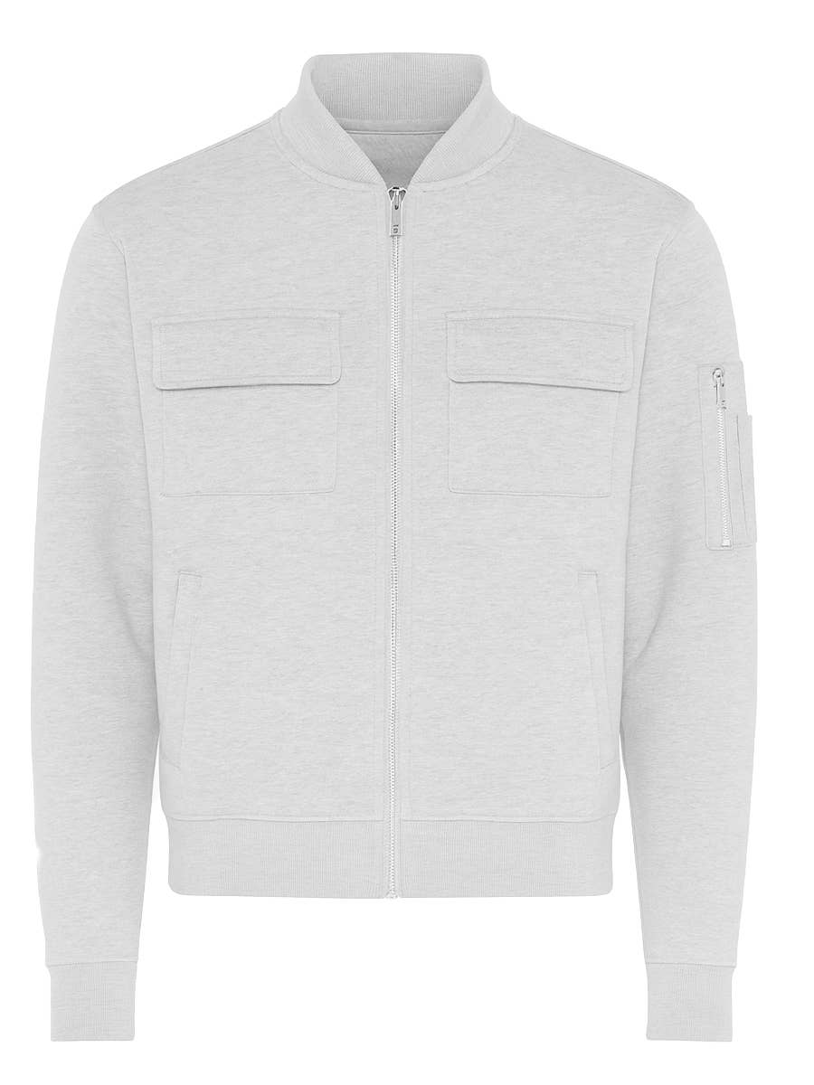 Cotton Zip Up Jacket Two Chest Pockets with Flaps 100 Cotton Regular Fit Ribbed Collar, Cuff, Waist Standard Pocket Model is 5'11 wearing a Medium