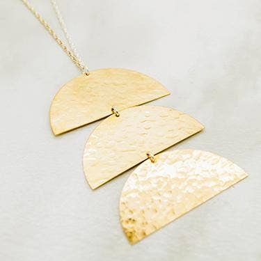 Long pull over the head style. Sterling Silver rope chain paired with textured brass shapes. The mixed metal style allows for versatile wear.