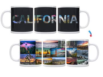 - Sneak peek of California Landmarks inside lettering before color change. - Mug changes color when filled with hot beverage. - Rest of California Landmarks are slowly revealed once mug fills with hot beverage. - Lettering faintly visible after color change. - Thermochromic color-changing ink - Shipped in plain white boxes - Hangtag included and decorated to promote unique color-changing feature - Not microwave or dishwasher safe / hand wash only / wash gently - Capacity: 11 fl oz. -Fantastic gift item, tourist/souvenir drinkware, heat sensitive mugs/cups/pint glasses available - Complimentary Signage included with order - Feel free to mix and match styles within your order - Check out my over 100 color changing cup designs on my profile (15 NCAA schools, 50 states, 5 cities, sports teams, animal themed, fun novelty styles)! - Sunkiss was founded in 2018 by Nolan Kozu and based out of Seattle, WA - Feel free to message me with any questions!