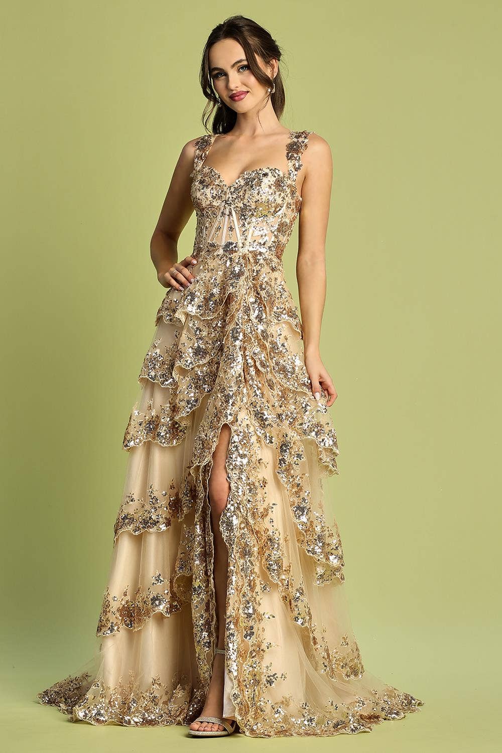 With this alluring spaghetti strap corset dress, get ready to shine and steal the spotlight. It's the ideal option for your special occasion because it was created to highlight your contours. This Fitted Long Formal Corset Prom Dress is a classic treasure because to the magnificent long length and our traditional fit and flare style. Your body is highlighted by the tight bodice and plunging V-neckline, which flow into a sophisticated skirt with magnificent dazzling embellishments. In this long, form-fitting prom dress that oozes class and charm, dance the night away. In this alluring gown, you'll feel like a true star, destined to create priceless memories. Length : Approximately 59 inches Sleeve Style : Spaghetti Straps Colors : Gold, Platinum, Rose Gold, Tiffany Gold, Black, Red, Navy, Emerald, Lilac, Royal Blue, Black Nude Sizes : 0, 2, 4, 6, 8, 10, 12, 14, 16, 18 Fully Lined Occasion : Prom, Formal, Special Occasion Style: DD1238