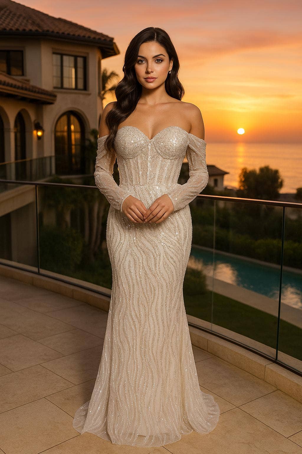 Glitter Prom Dress with Off Shoulder Sweetheart Neckline
